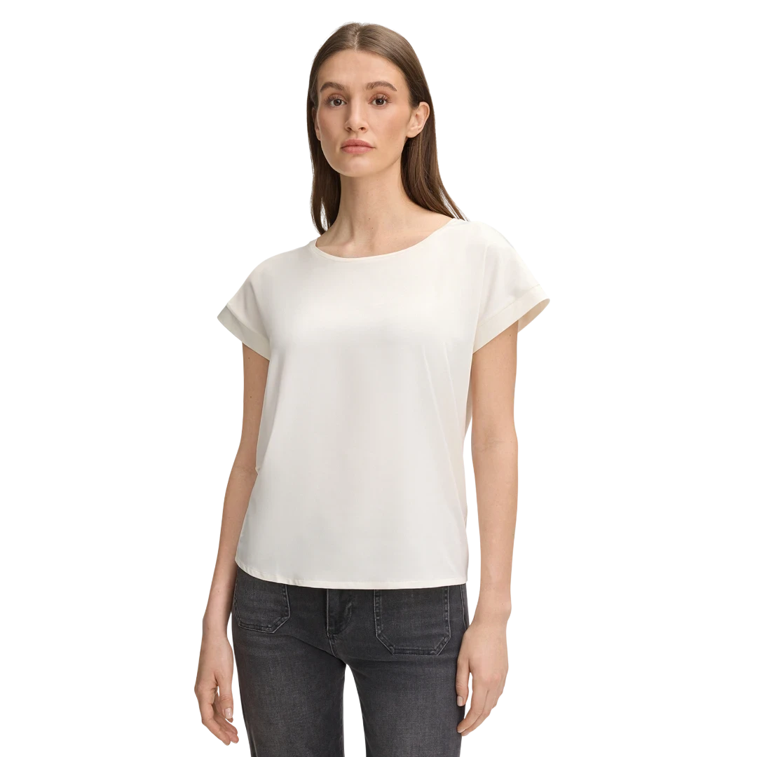 JOOP! ženska satenska bluza u prefinjenoj bijeloj nijansi donosi sofisticiran, čist i moderan izgled. Izrađena od glatkog, svilenkastog materijala koji nježno klizi preko tijela, pruža luksuzan osjećaj i savršeno pristaje u svim prilikama – od poslovnih kombinacija do večernjih outfita. Opušteni kroj i kratki rukavi daju bezvremensku jednostavnost, dok diskretni sjaj tkanine naglašava eleganciju karakterističnu za JOOP! Estetiku. Idealna je za nošenje ispod sakoa ili kao samostalni chic komad.