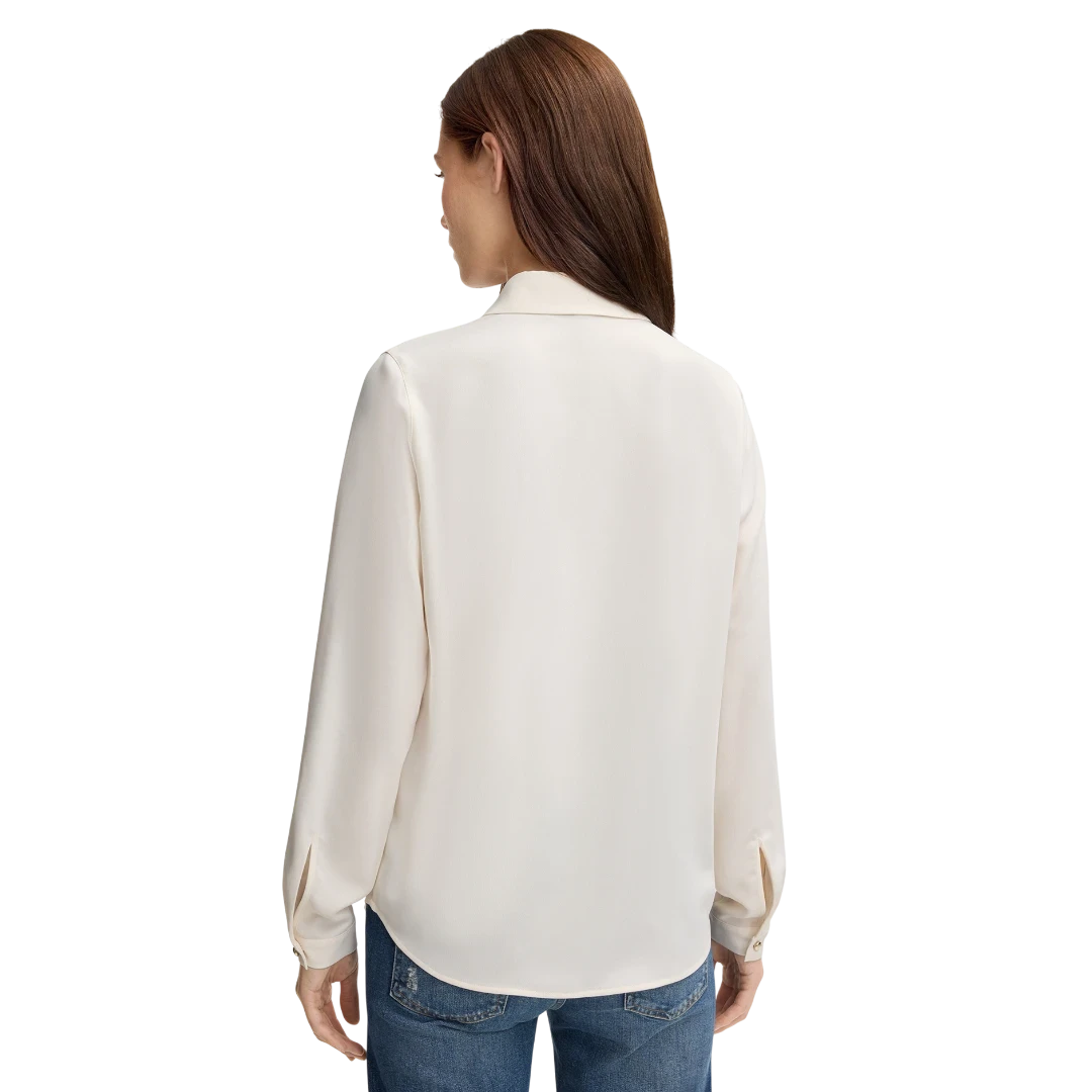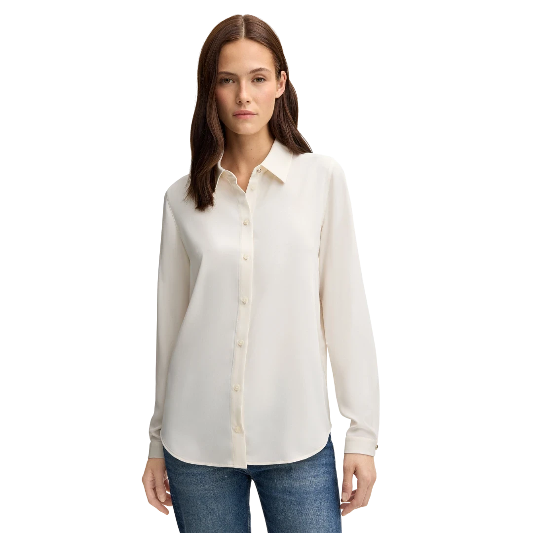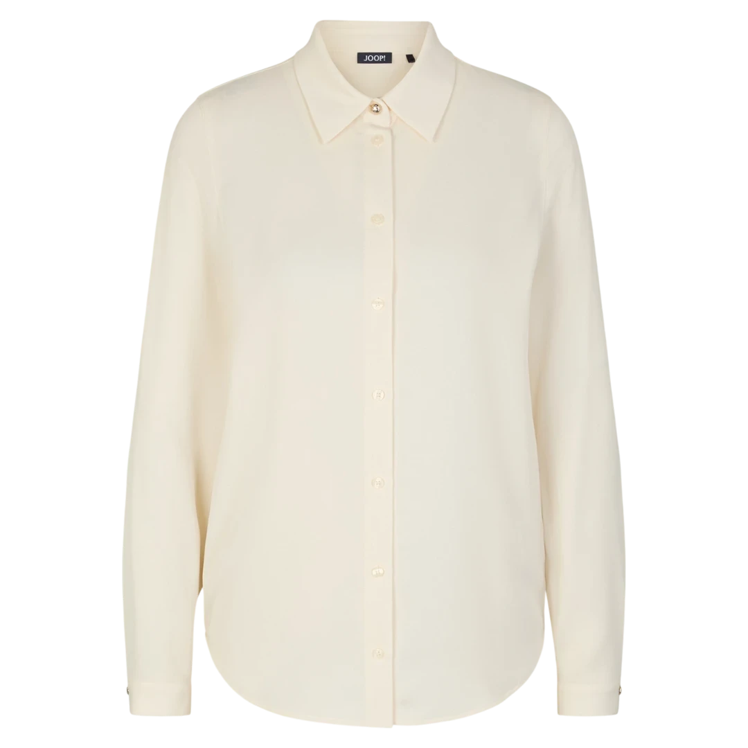 JOOP! ženska košulja u nježnoj krem nijansi donosi savršen spoj klasike, sofisticiranosti i moderne lakoće. Izrađena od lagane, glatke tkanine koja lijepo pada, ovaj model pruža udobnost i bezvremenski stil pogodan za poslovne i elegantne dnevne kombinacije. Klasičan kragnica-dizajn, skriveno kopčanje dugmadima i suptilni zlatni detalj na gornjem dugmetu dodaju notu luksuza karakterističnu za JOOP! estetiku. Opušteni kroj i zaobljen rub omogućavaju lako kombinovanje – idealno uz pantalone visokog struka, suknje ili ispod sakoa za besprijekorno dotjeran izgled.