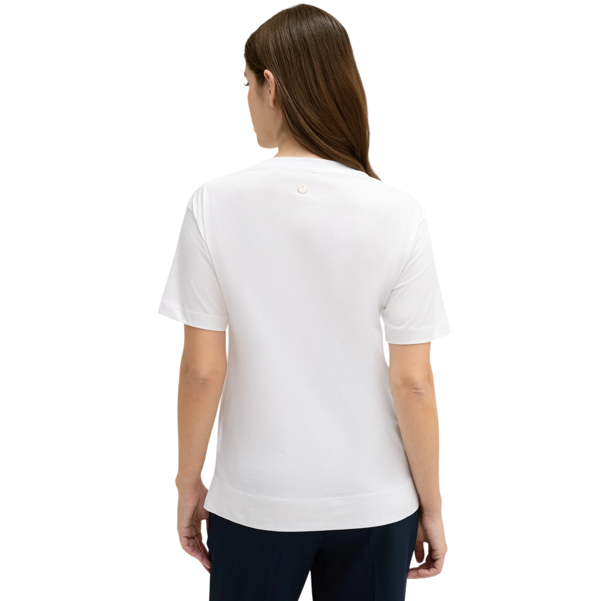 SKU: 39935Majica Tonia od čistog pamuka predstavlja neizostavan osnovni komad u garderobi, savršen za kombinovanje s farmerkama ili suknjama. Prepoznatljiva je po logotipu ukrašenom cirkonima na prednjoj strani, koji unosi dašak elegancije u svakodnevni stil. Klasičan rebrasti okrugli izrez, dupli šavovi na rukavima i uredno završeni porub naglašavaju kvalitet izrade, dok diskretna pločica s logotipom na leđima upotpunjuje prepoznatljiv Joop! izgled.