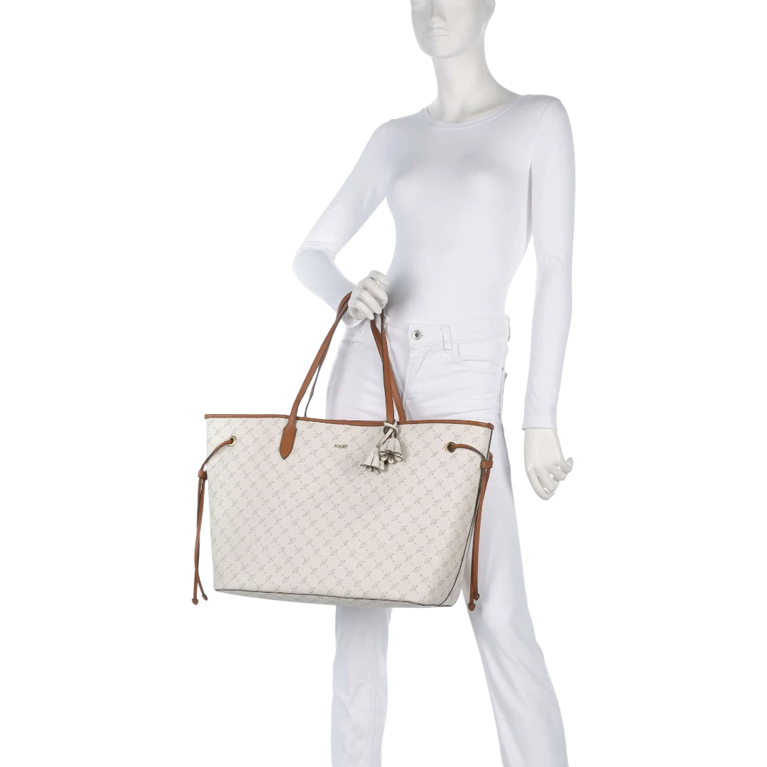 Elegantna i prostrana tote torba iz JOOP! kolekcije Cortina koja spaja funkcionalnost i moderni dizajn. Izrađena je od kvalitetnog materijala s logotip printom, što joj daje sofisticiran i prepoznatljiv izgled. Torba se zatvara sigurnim metalnim kopčanjem (“lobster clasp”) i opremljena je s dvije ručke idealne dužine za nošenje u ruci ili preko ramena. Unutrašnjost je prostrana i dovoljno velika da primi A4 dokumente, uz dodatnu odvojivu unutarnju torbicu koja omogućava bolju organizaciju sitnih predmeta. Metalni detalji u elegantnoj boji uklapaju se u urbani stil