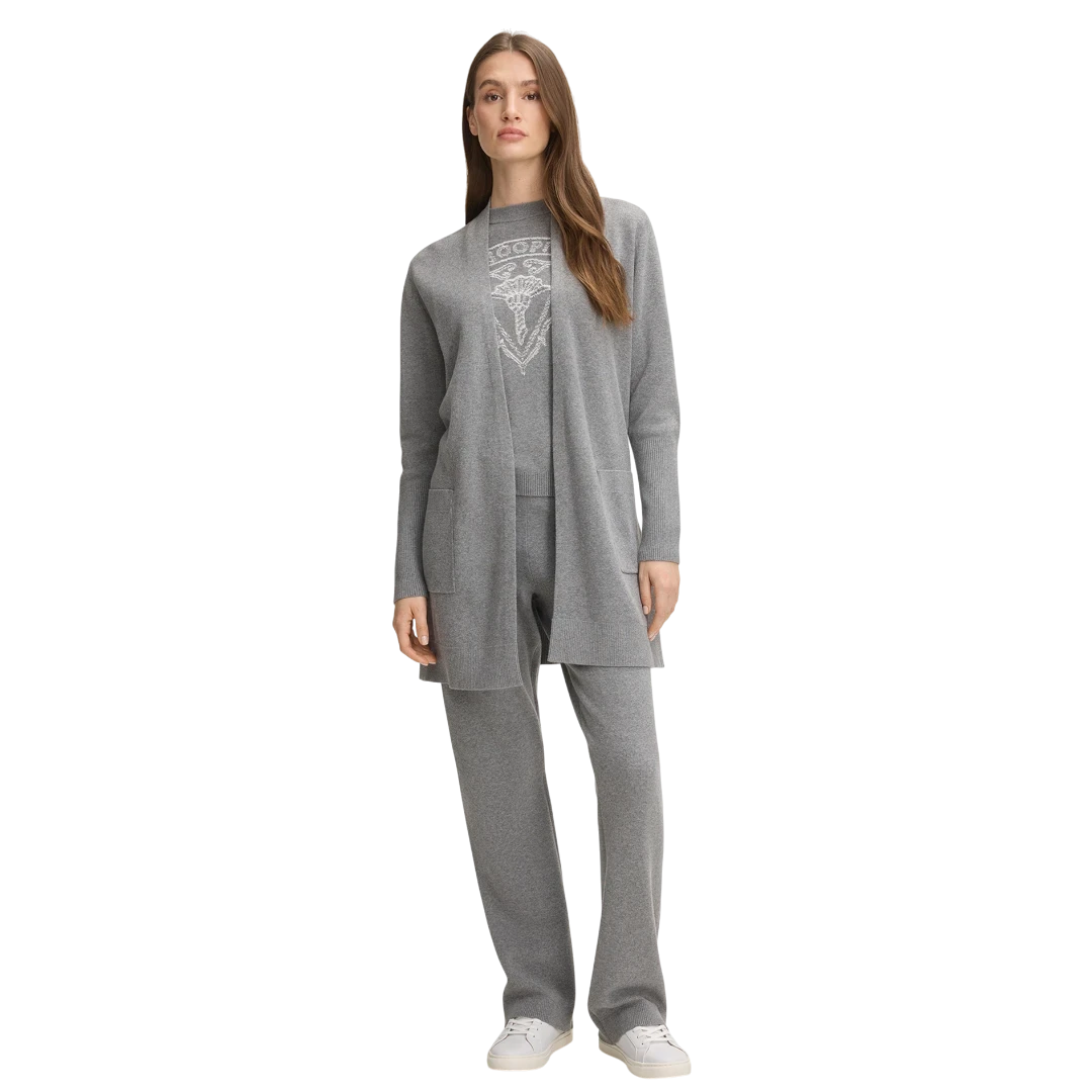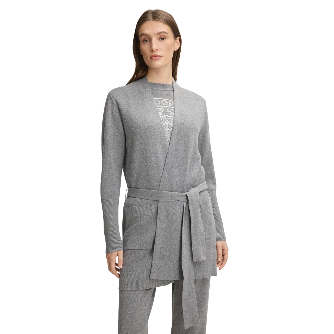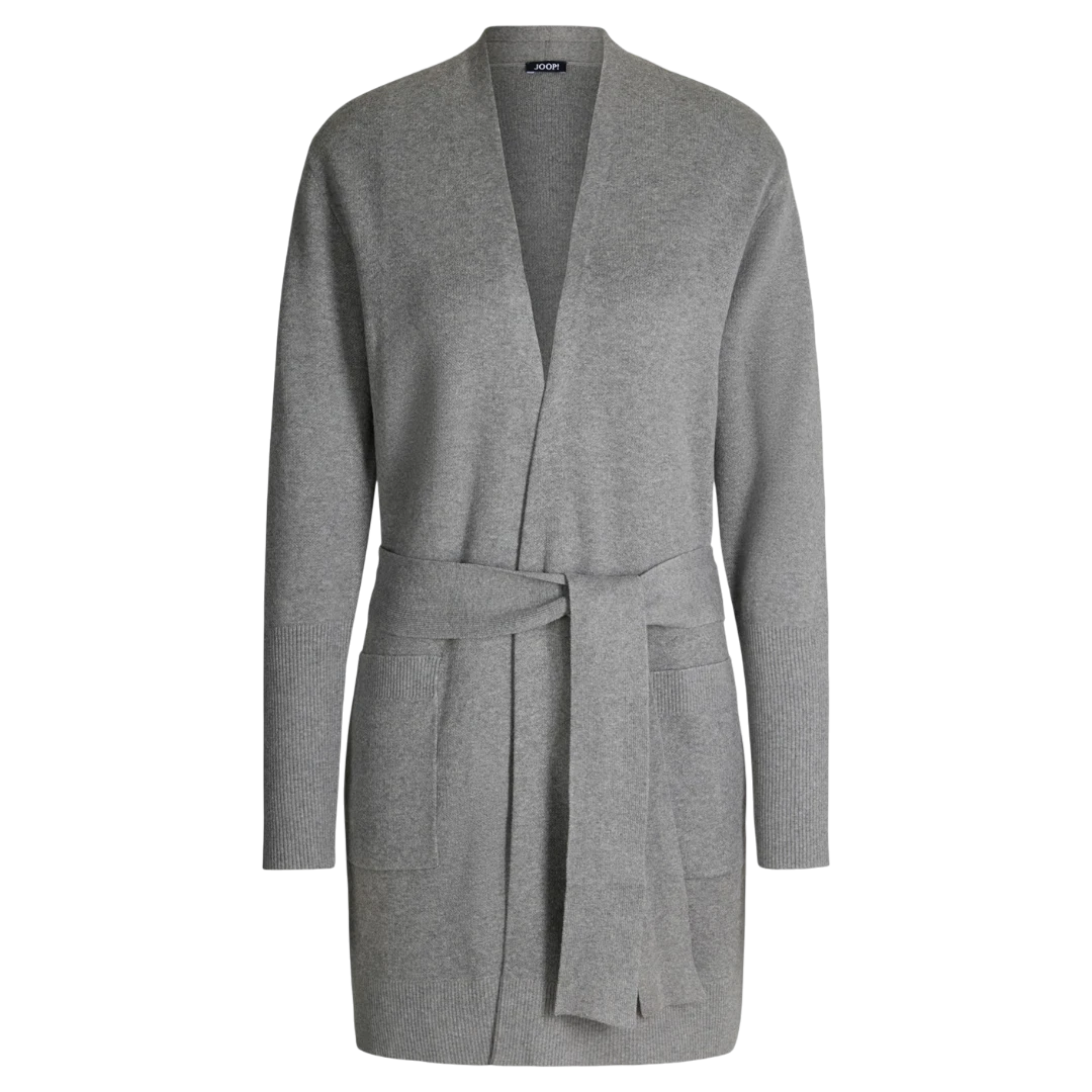 Elegantna JOOP! kardigan jakna u mekoj sivoj nijansi donosi savršenu ravnotežu udobnosti i sofisticiranog izgleda. Model bez kopčanja, s uklonjivim pojasom, omogućava prilagođeno oblikovanje struka, dok moderno ravni kroj pruža ležernu eleganciju. Izrađena od prijatnog, toplog pletiva, idealna je za svakodnevne kombinacije — od poslovnih outfita do opuštenih weekend lookova. Praktični prednji džepovi i čist dizajn čine je bezvremenskim komadom koji lako pristaje uz sve.
