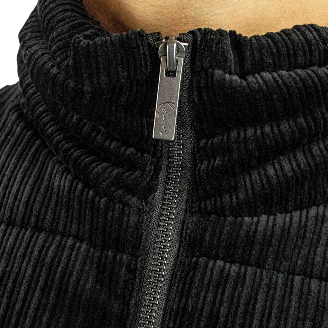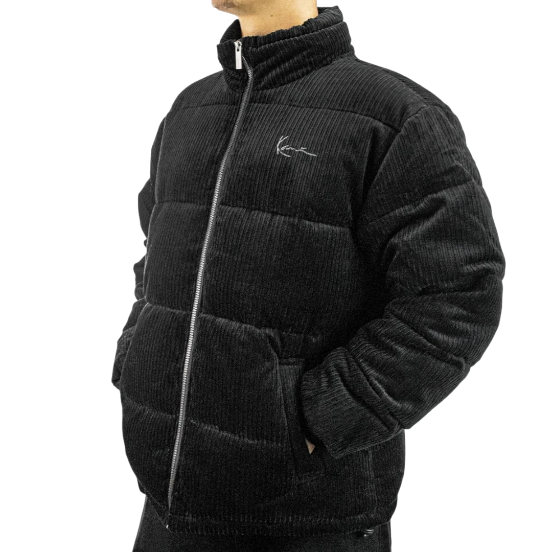 Ova Karl Kani muška jakna donosi prepoznatljiv urbani stil u kombinaciji sa funkcionalnošću i toplinom. Izrađena je od rebrastog, kordurojskog materijala koji joj daje sofisticiran, ali i moderan streetwear izgled. Punjena je tako da pruža dobru termoizolaciju, što je čini pogodnom za hladnije dane.