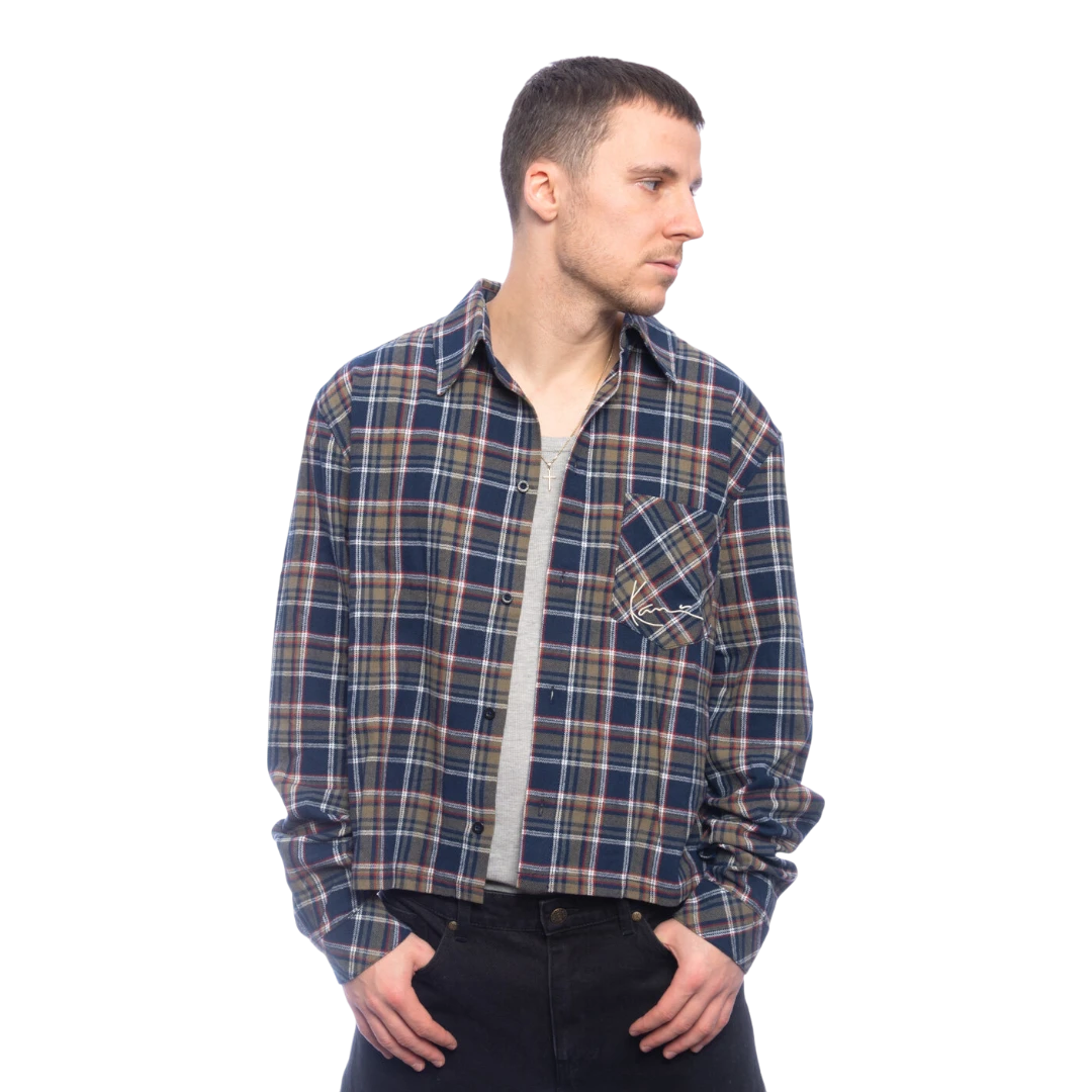 Dizajn je upotpunjen klasičnim kopčanjem na dugmad i praktičnim džepom na prsima, diskretno naglašenim Karl Kani potpisom koji daje autentičan pečat brenda. Karirani uzorak pruža bezvremenski izgled koji se lako kombinuje s farmerkama, chino pantalonama ili slojevitim stylingom preko majice.