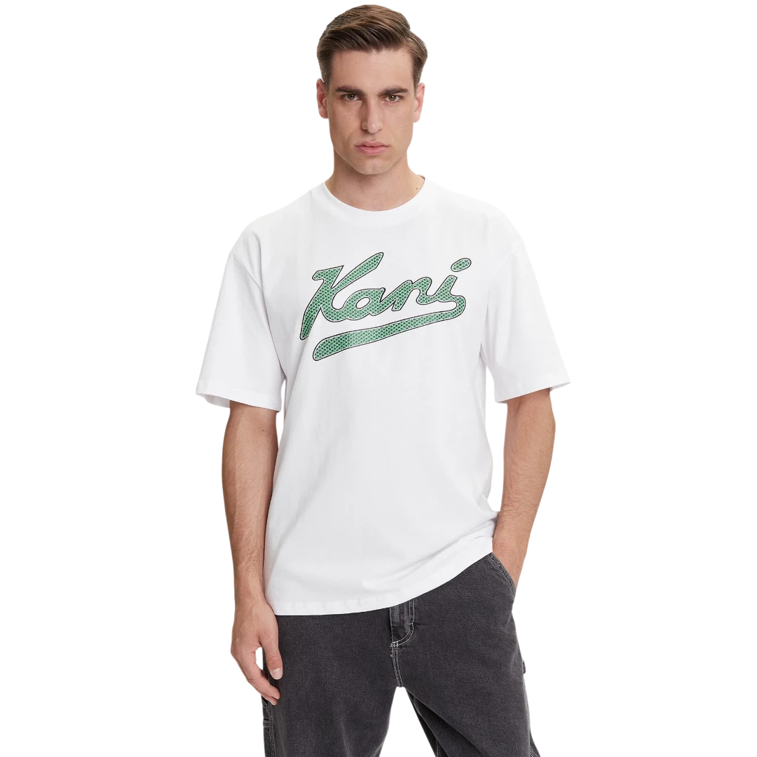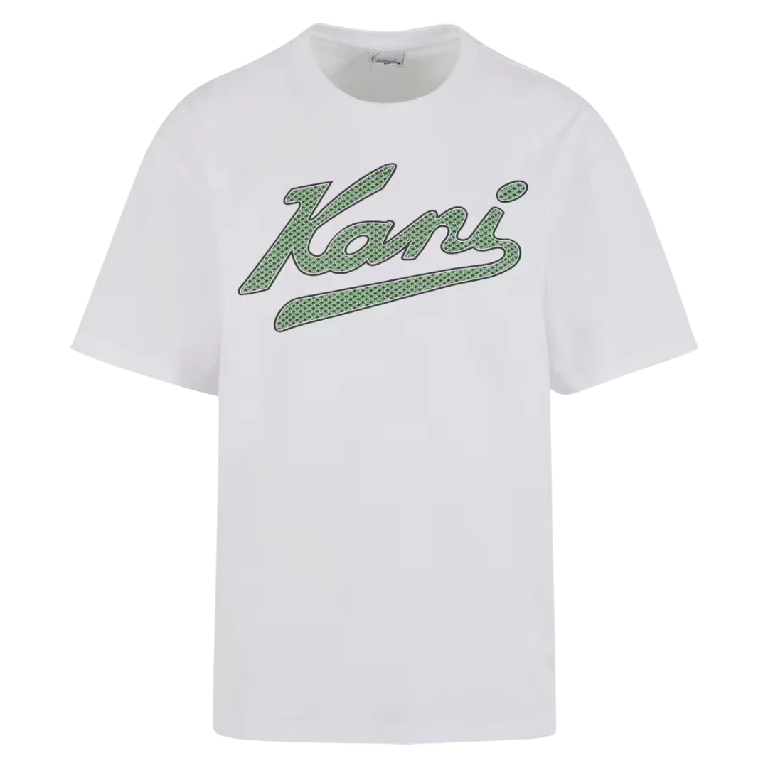 SKU: 42003Ova bijela Karl Kani majica s prepoznatljivim zelenim "Kani" logotipom u varsity stilu spaja sportski duh i urbano naslijeđe. Udoban kroj i pamučni materijal pružaju maksimalnu udobnost, dok efektan print unosi dozu karaktera u svaki casual outfit.