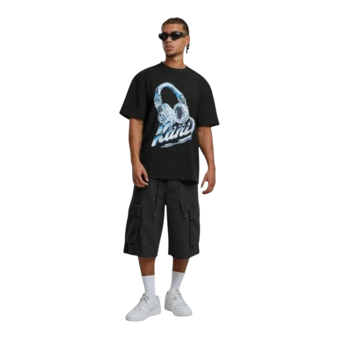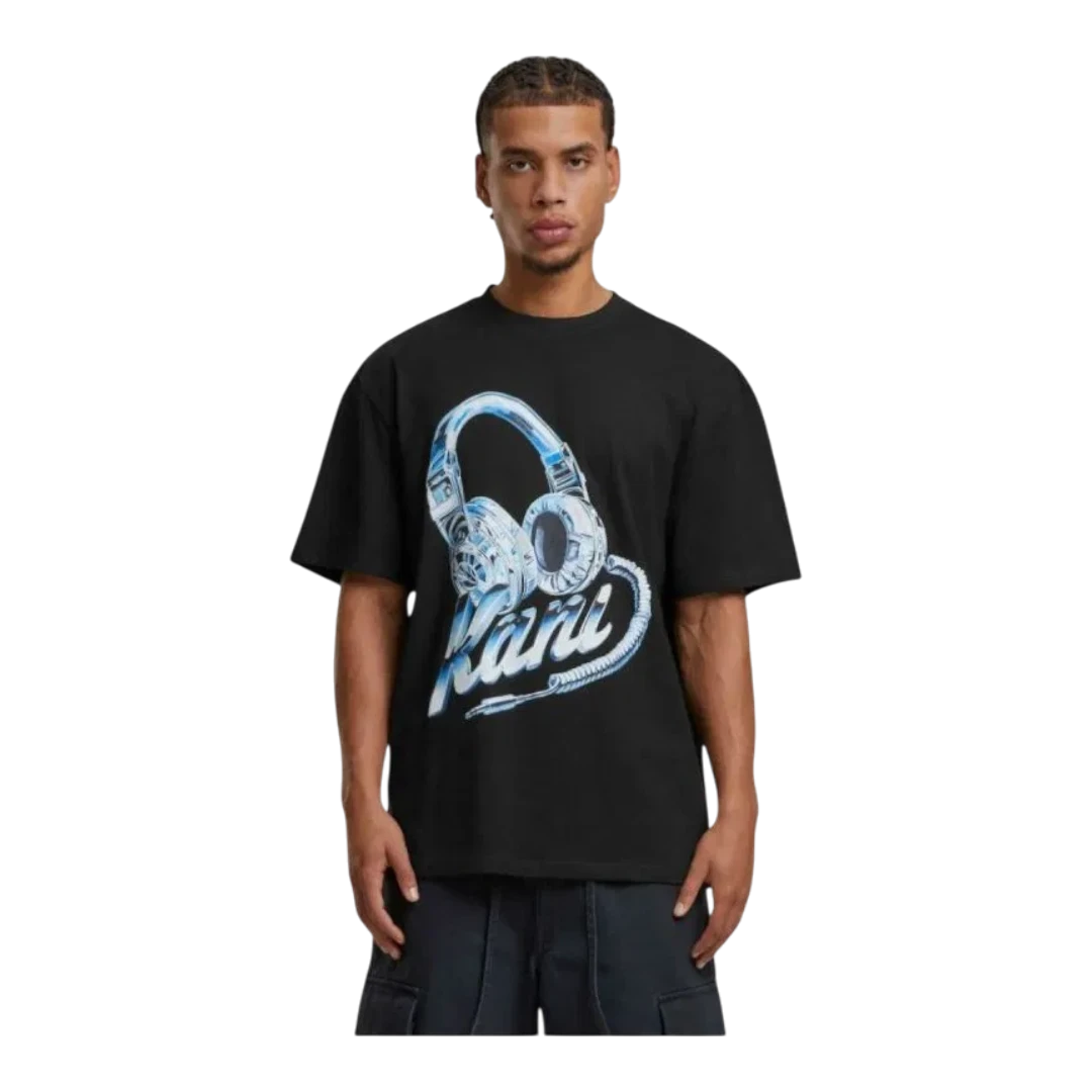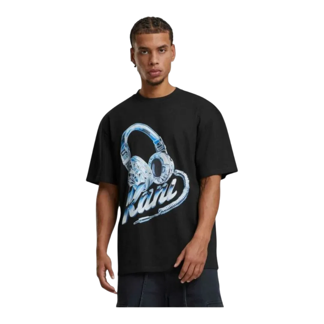 Moderna Karl Kani majica kratkih rukava izrađena od kvalitetnog, mekanog pamuka koji pruža udobnost tokom cijelog dana. Crna podloga ističe upečatljiv grafički print sa slušalicama i prepoznatljivim Karl Kani logotipom u plavo-bijelim tonovima, dajući majici urban i streetwear izgled. Opušten kroj omogućava lako kombinovanje sa farmerkama, cargo hlačama ili trenerkama, idealna za svakodnevne i casual outfite.