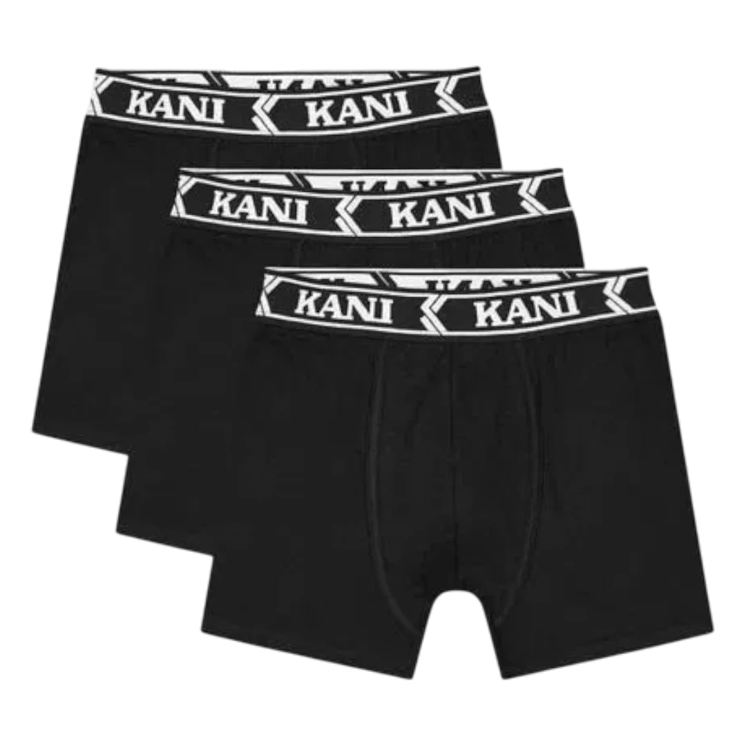 Bokserice su u klasičnoj crnoj boji, dok je elastični pojas ukrašen kontrastnim Karl Kani natpisom koji pruža sigurno prijanjanje bez stezanja. Kroj je moderan i funkcionalan, sa dovoljno prostora i podrške, što ih čini pogodnim za svakodnevno nošenje, posao ili slobodno vrijeme.