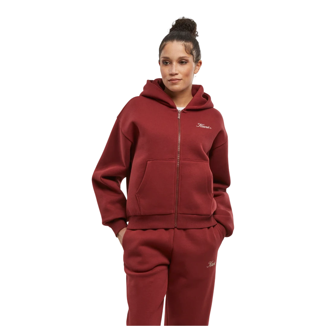 Ova Karl Kani ženska dukserica sa kapuljačom i rajsferšlusom donosi upečatljiv, ali i sofisticiran streetwear stil. Bogata bordo boja daje joj moderan i topao izgled, idealan za svakodnevne urbane kombinacije.