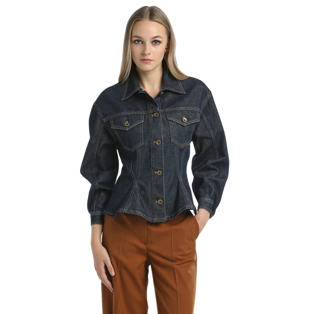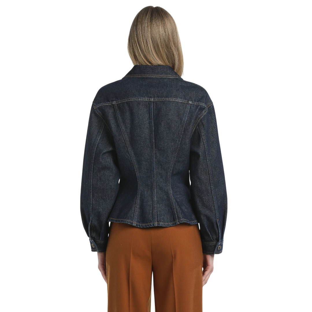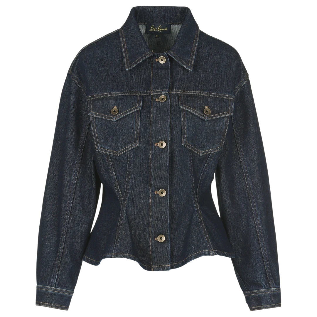Luisa Spagnoli teksas jakna donosi klasičnu notu u modernom, ženstvenom kroju. Izrađena od visokokvalitetnog tamnog denima, ova jakna ističe struk zahvaljujući elegantnim šavovima i blago strukiranom kroju. Dugmad u zlatnoj nijansi i praktični džepovi na grudima daju joj prepoznatljiv karakter, dok bezvremenski dizajn omogućava lako kombinovanje – od ležernih dnevnih kombinacija do sofisticiranih večernjih outfita.