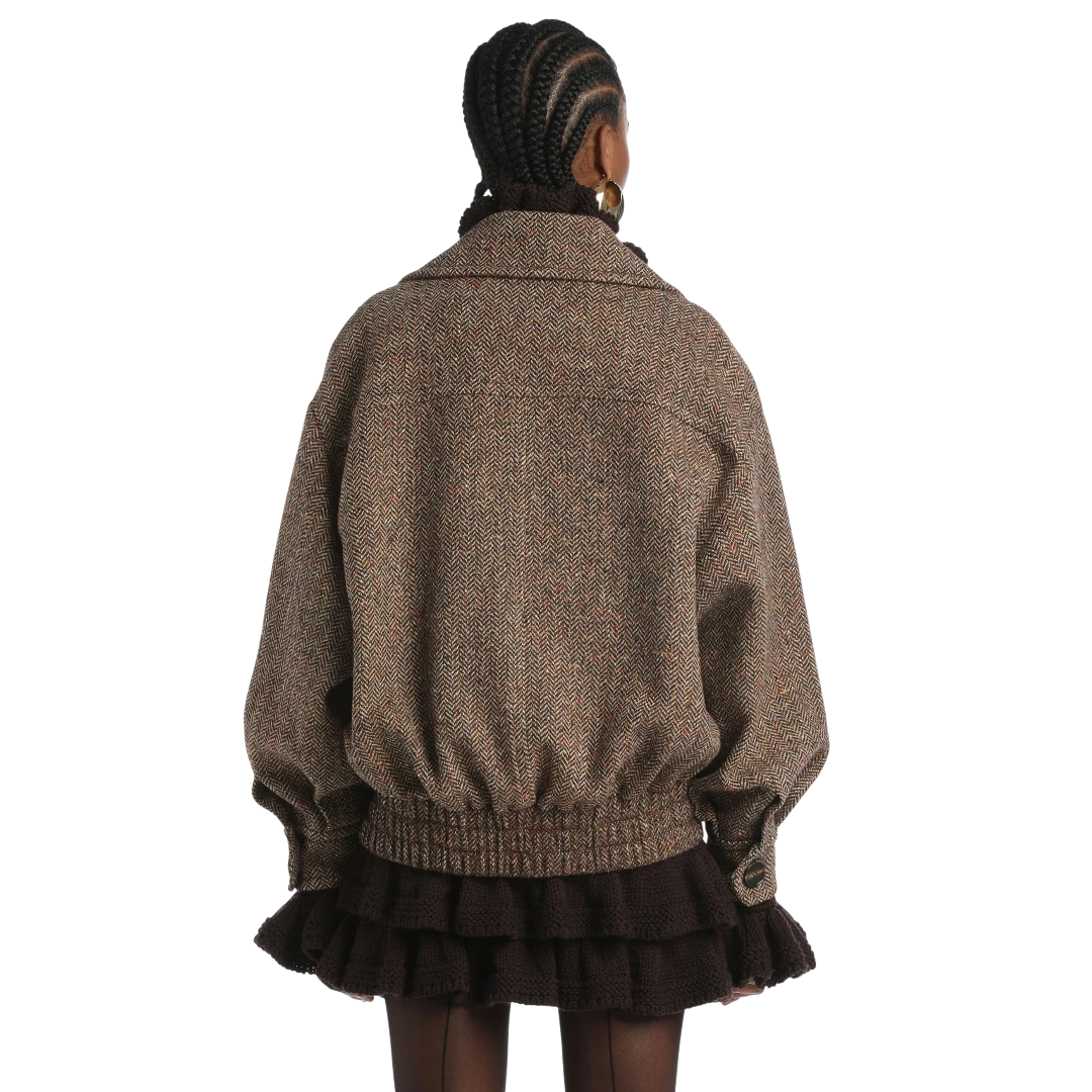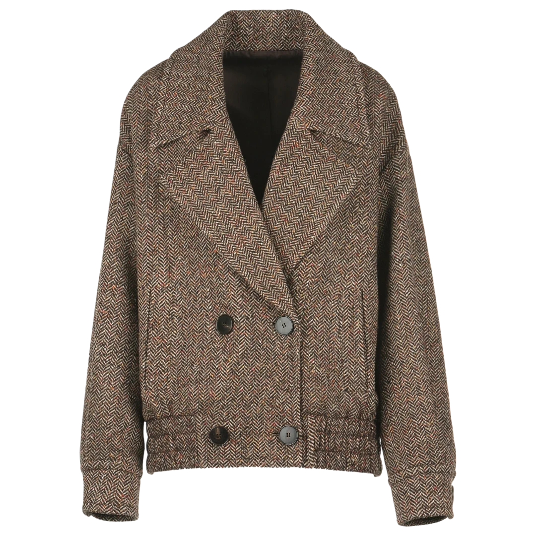 Luisa Spagnoli kratki kaput u tvid uzorku donosi bezvremensku eleganciju sa modernim prizvukom. Izrađen od kvalitetne vune, ističe se klasičnim dvorednim kopčanjem i velikim reverima, dok elastični detalj u struku daje suptilan oblik i dodatnu udobnost. Topao i sofisticiran, ovaj model savršeno se uklapa u urbane jesensko-zimske kombinacije, bilo da se nosi uz elegantne pantalone ili ležerne farmerke.