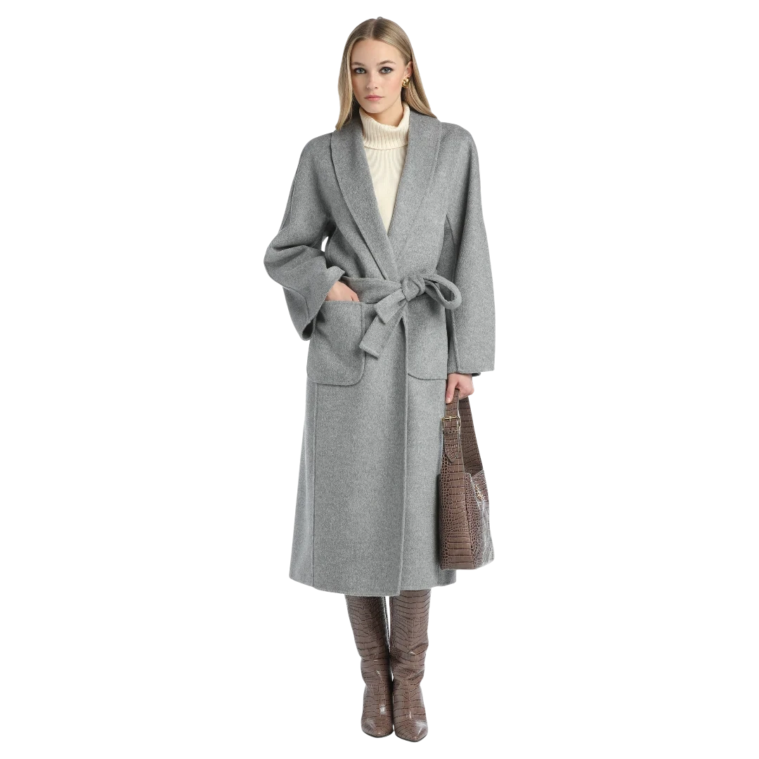 Luisa Spagnoli kaput u sivoj nijansi odiše sofisticiranošću i luksuzom. Izrađen od vrhunske vune, pruža toplinu i eleganciju, dok minimalistički kroj s opuštenim rukavima i pojasom u struku naglašava ženstvenu siluetu. Veliki reveri i praktični prednji džepovi daju mu dodatnu notu modernosti i funkcionalnosti. Ovaj kaput je savršen izbor za svečane i poslovne prilike, ali i za svakodnevne elegantne kombinacije – klasik koji nikada ne izlazi iz mode.