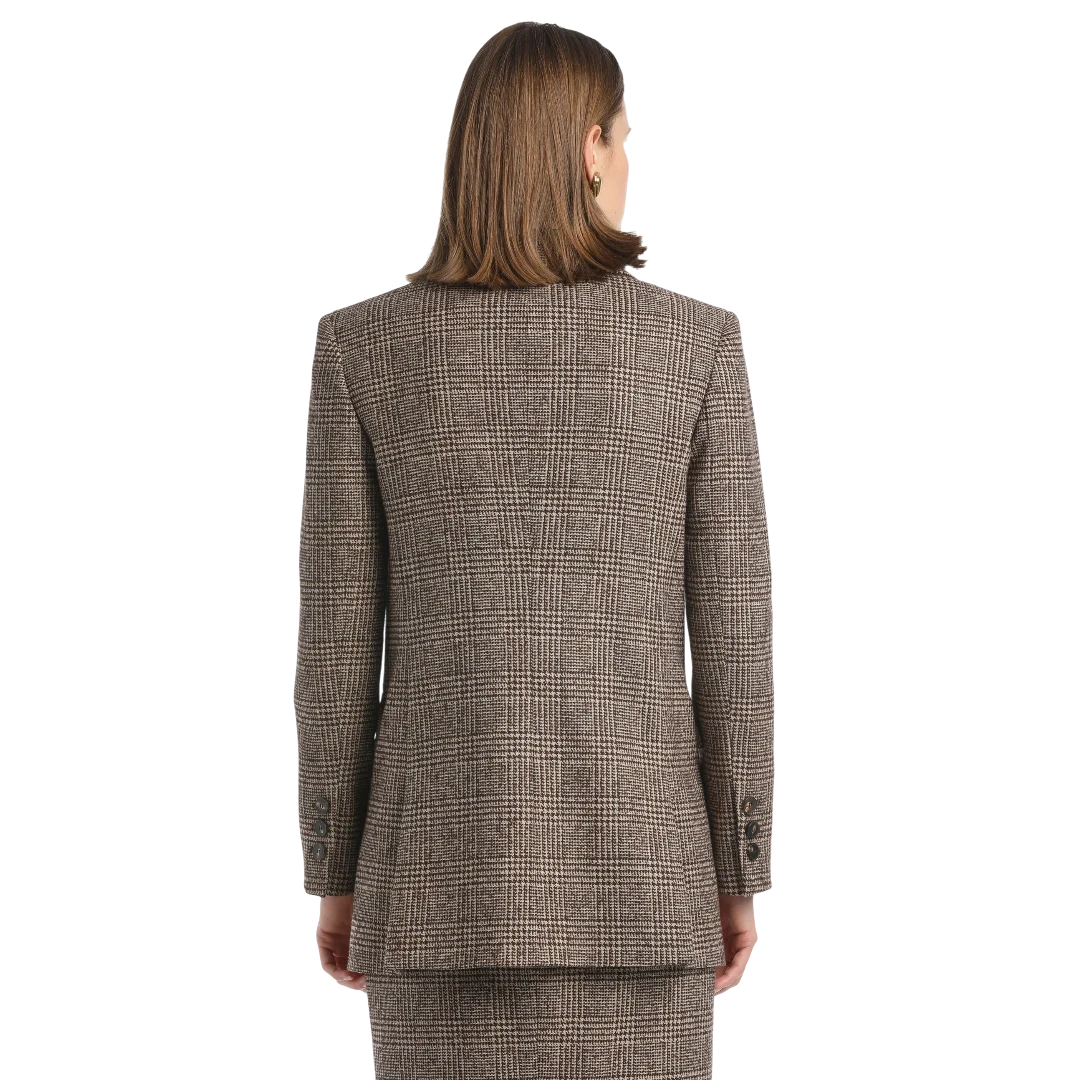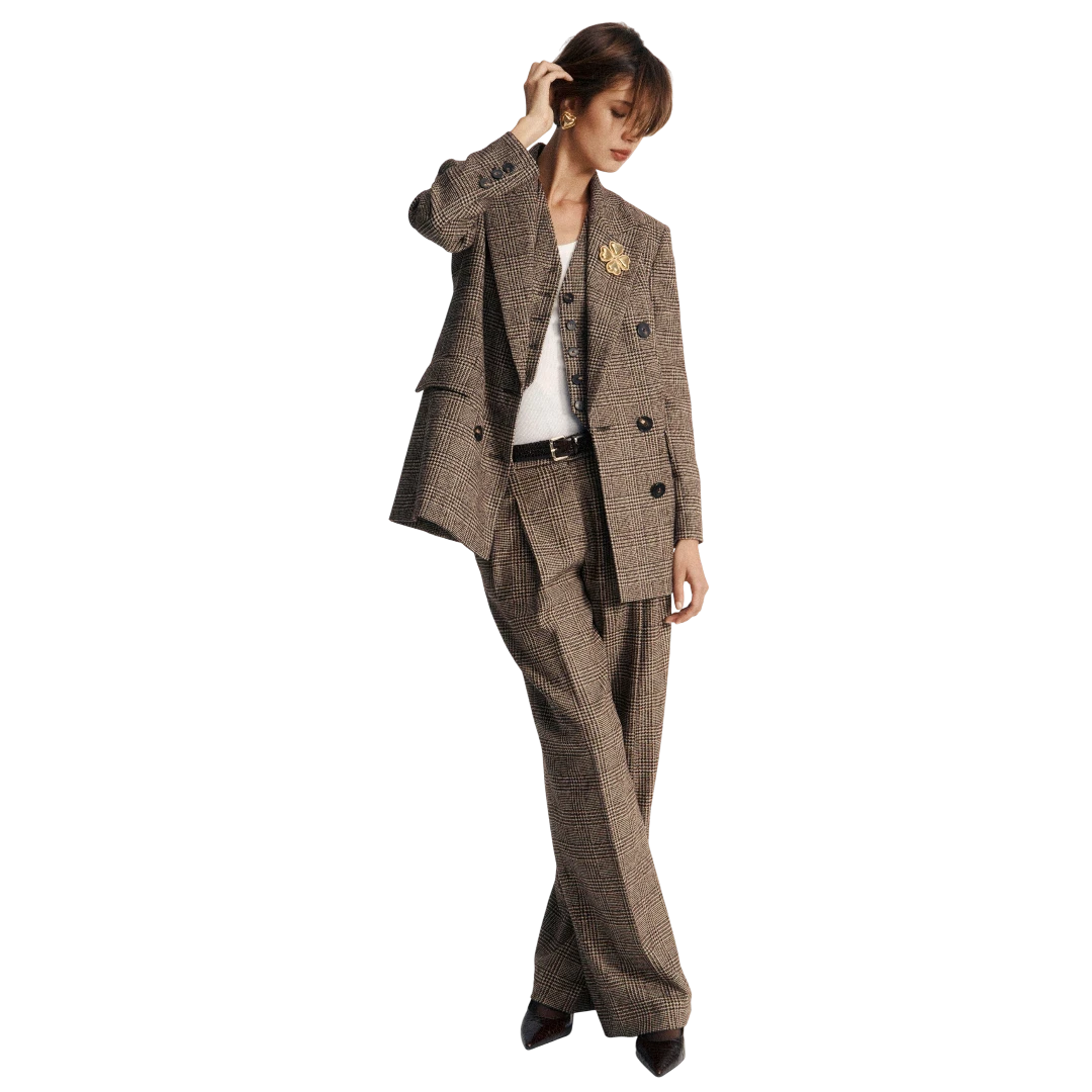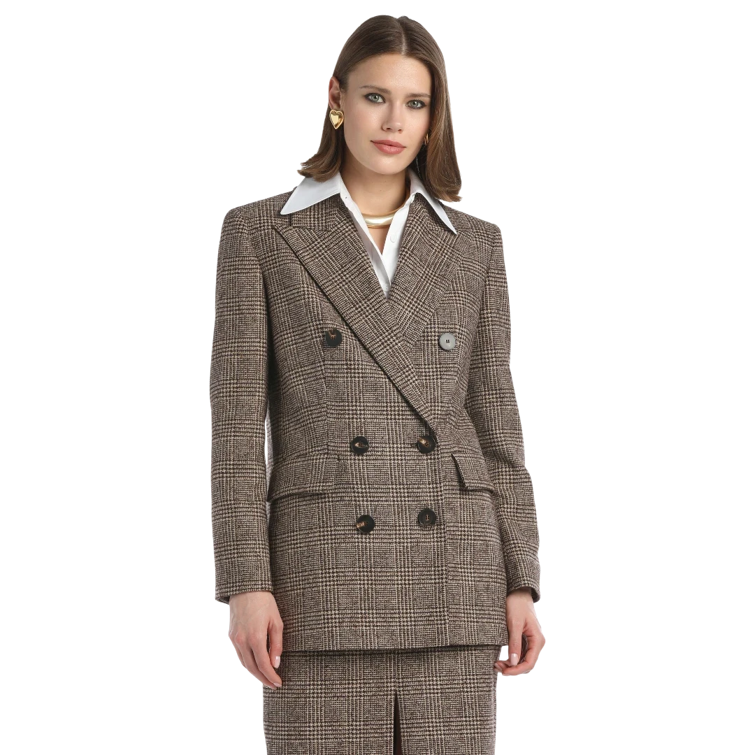 Ovaj Luisa Spagnoli sako predstavlja savršen spoj klasične elegancije i modernog dizajna. Izrađen od visokokvalitetne tkanine sa prepoznatljivim kariranim uzorkom, dolazi u kroju koji naglašava ženstvenu siluetu, a istovremeno odiše profinjenom sofisticiranošću. Dvoredno kopčanje i strukturalni reveri daju mu bezvremenski karakter, dok neutralne nijanse smeđe i bež boje omogućavaju lako kombiniranje – od poslovnih outfita do večernjih kombinacija. Idealna investicija za jesen i zimu, ovaj sako unosi luksuz i prefinjenost u svaku garderobu.