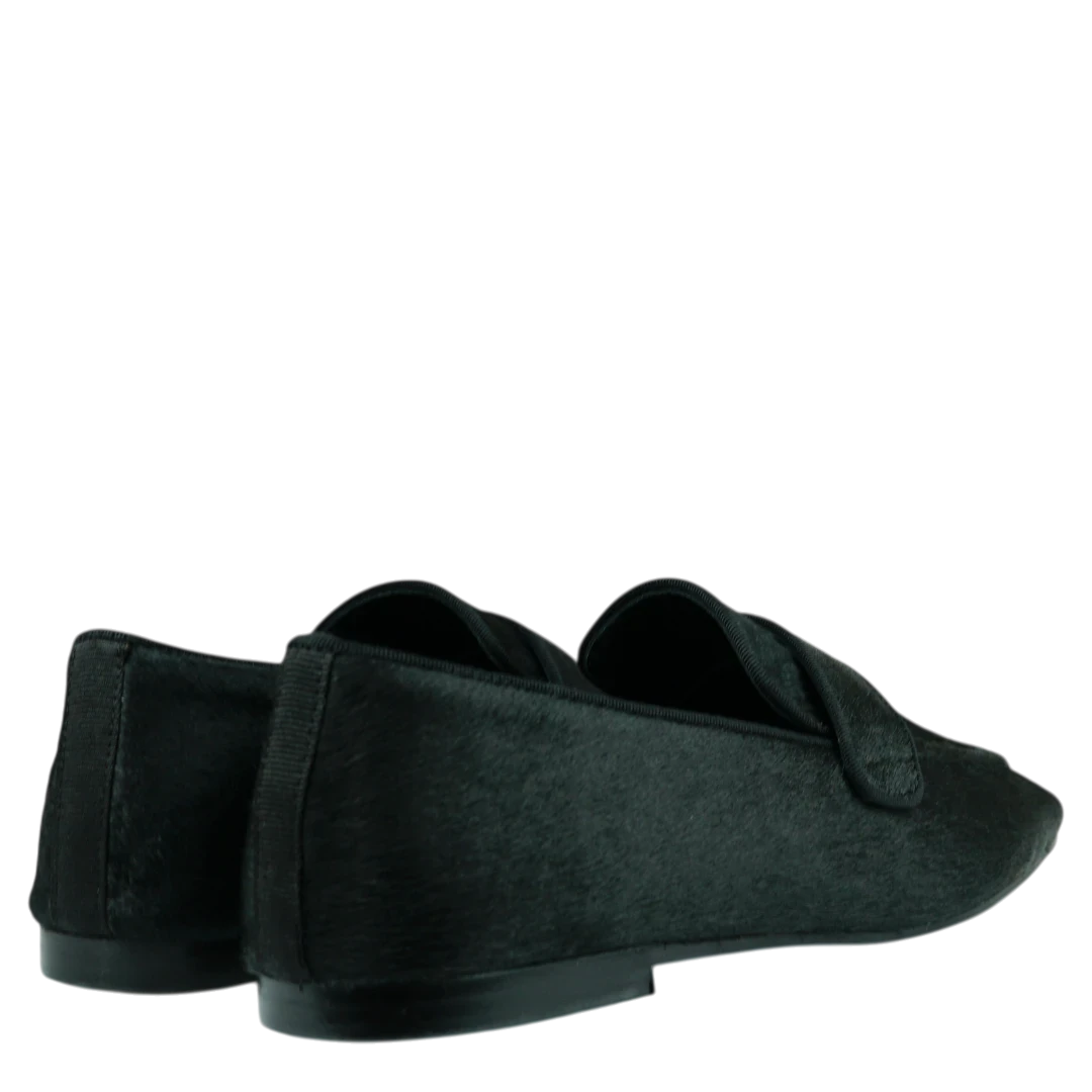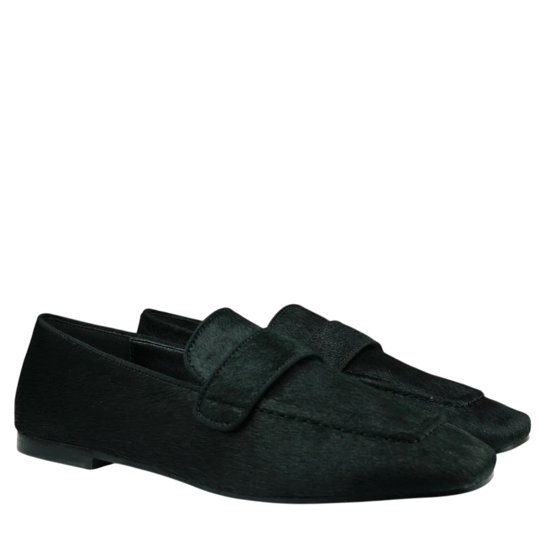 Ove elegantne crne mokasine spajaju minimalizam i sofisticiranost u savršenom balansu. Donose profinjeni izgled, dok klasičan remenčić preko risa unosi dašak bezvremenske elegancije. Ravan đon pruža udobnost za cjelodnevno nošenje, čineći ih idealnim izborom za poslovne kombinacije, ali i za ležerne outfite sa stilom.