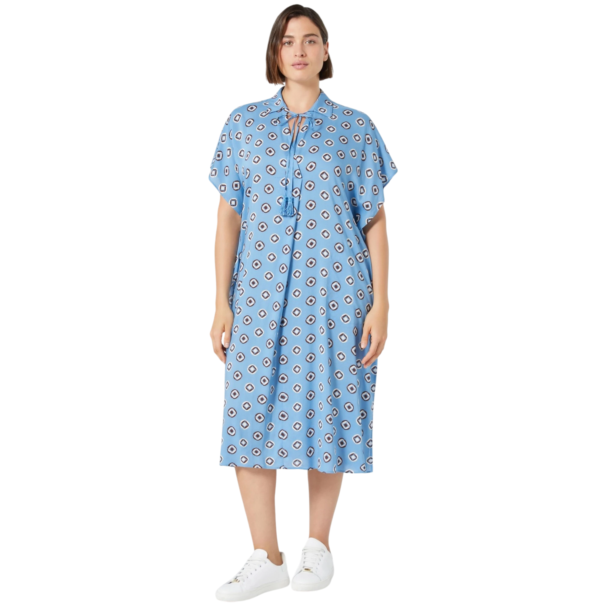 SKU: 41032Elegantna i prozračna, ova Marina Rinaldi haljina iz Marina Sport kolekcije izrađena je od lepršave viskoze s ekskluzivnim printom koji donosi dozu sofisticiranosti svakom outfitu. Ravan kroj i V-izrez naglašavaju jednostavnu siluetu, dok bočni prorezi i ušiveni džepovi pružaju dodatnu udobnost i lakoću pokreta. Savršen izbor za opuštene, ali stilizirane trenutke – nosiva u svakom trenutku dana.