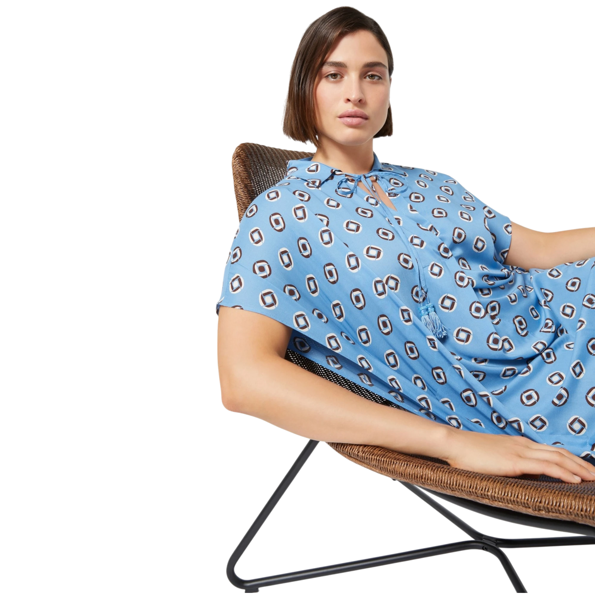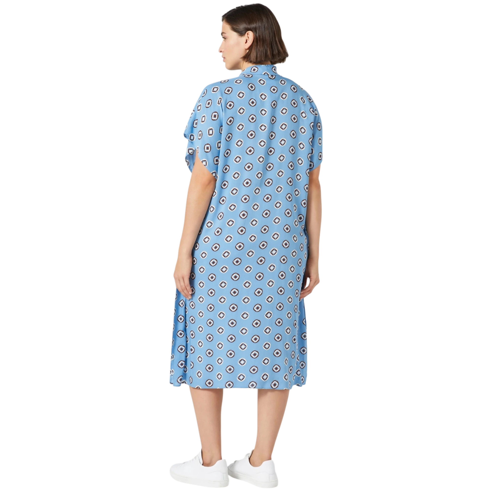 Elegantna i prozračna, ova Marina Rinaldi haljina iz Marina Sport kolekcije izrađena je od lepršave viskoze s ekskluzivnim printom koji donosi dozu sofisticiranosti svakom outfitu. Ravan kroj i V-izrez naglašavaju jednostavnu siluetu, dok bočni prorezi i ušiveni džepovi pružaju dodatnu udobnost i lakoću pokreta. Savršen izbor za opuštene, ali stilizirane trenutke – nosiva u svakom trenutku dana.
