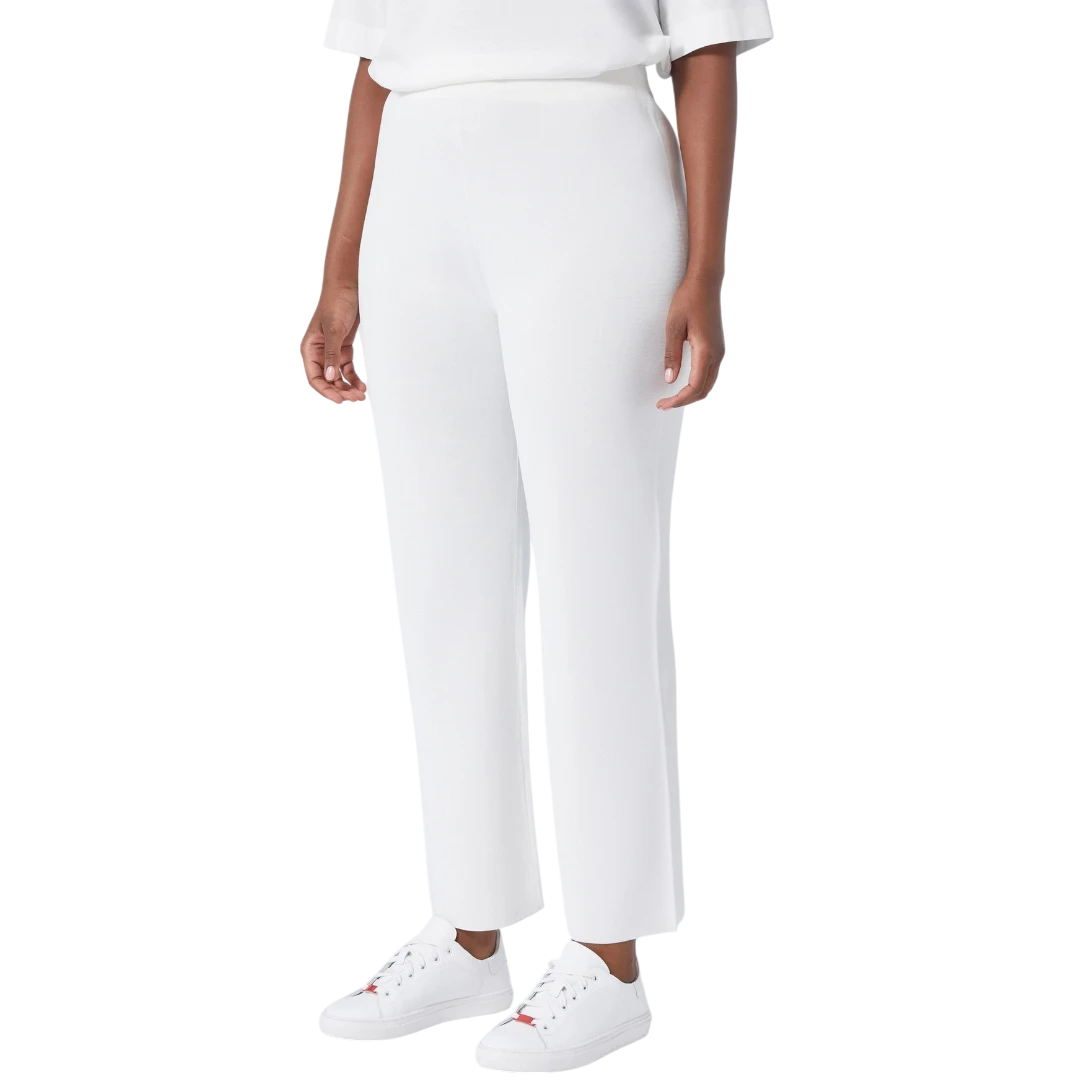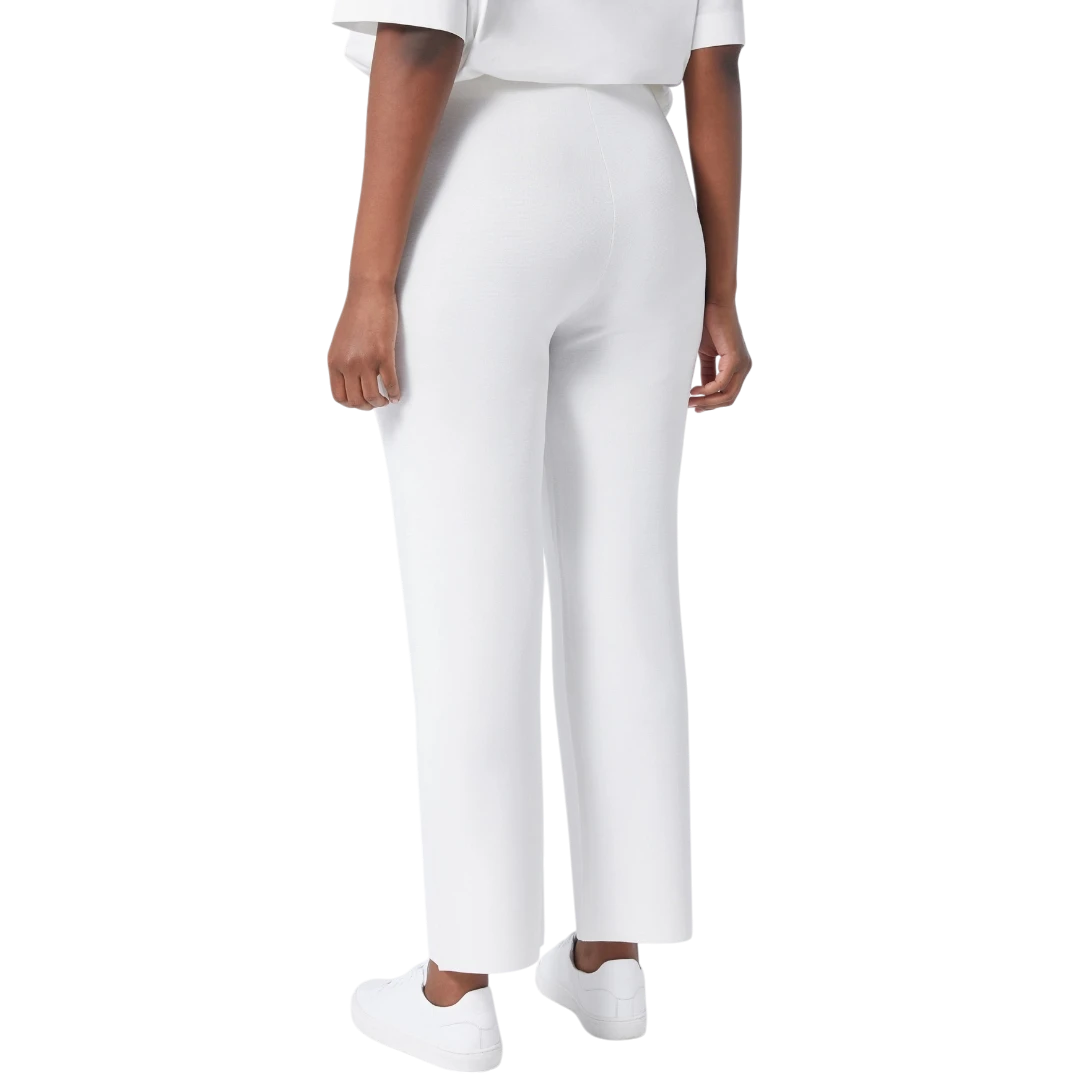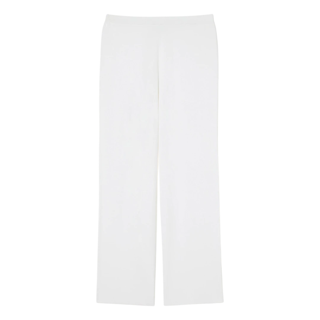 Ove bijele hlače iz Voyage kolekcije spajaju udobnost i eleganciju zahvaljujući ravnom kroju i finom viskoznom pletivu. Njihov lagan i prijatan materijal osigurava neometano kretanje, dok elastični pojas pruža dodatnu udobnost i savršeno pristajanje. Idealne su za opuštene, ali sofisticirane kombinacije, posebno u paru s odgovarajućim džemperom iz iste kolekcije.