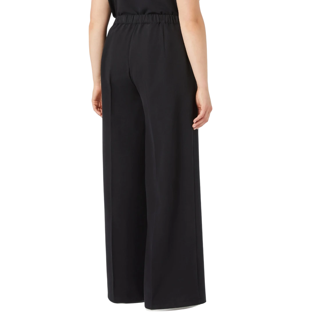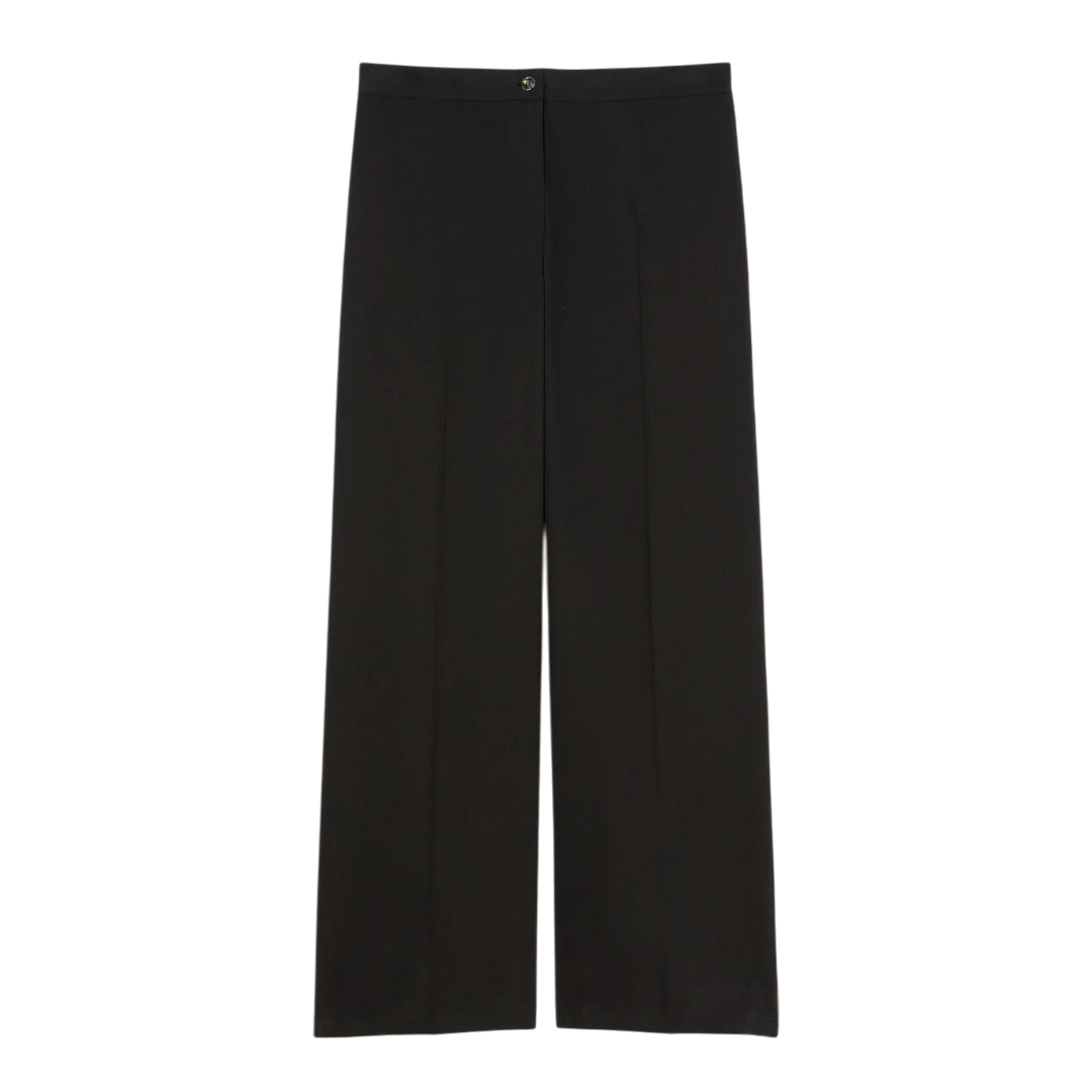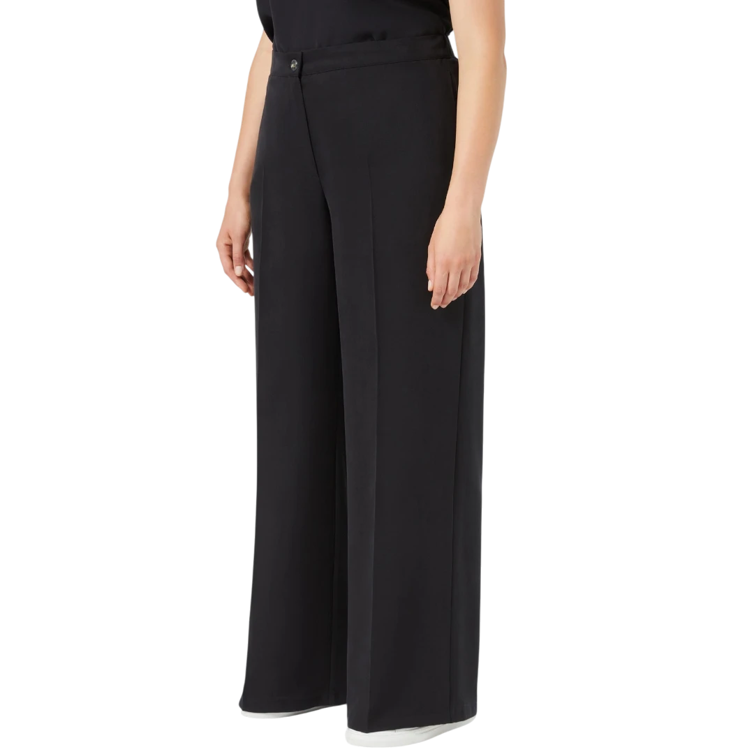 Ove široke hlače iz kolekcije Persona by Marina Rinaldi donose savršen spoj elegancije i udobnosti. Izrađene od laganog, fluidnog Tencel materijala, odlikuju se opuštenim krojem koji nježno prati liniju tijela, dok ušiveni falt detalj na prednjem dijelu dodaje notu sofisticiranosti. Zatvaranje na dugme i rajsferšlus u kombinaciji s elastičnim pojasom na leđima osigurava savršeno pristajanje i udobnost tokom cijelog dana. Idealne su za poslovne, ali i opuštene dnevne kombinacije koje traže eleganciju bez napora.