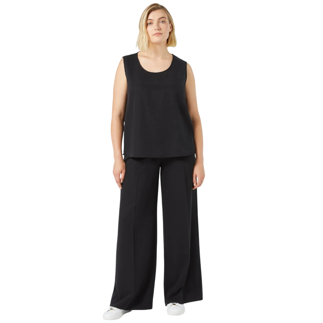 SKU: 40953Ove široke hlače iz kolekcije Persona by Marina Rinaldi donose savršen spoj elegancije i udobnosti. Izrađene od laganog, fluidnog Tencel materijala, odlikuju se opuštenim krojem koji nježno prati liniju tijela, dok ušiveni falt detalj na prednjem dijelu dodaje notu sofisticiranosti. Zatvaranje na dugme i rajsferšlus u kombinaciji s elastičnim pojasom na leđima osigurava savršeno pristajanje i udobnost tokom cijelog dana. Idealne su za poslovne, ali i opuštene dnevne kombinacije koje traže eleganciju bez napora.