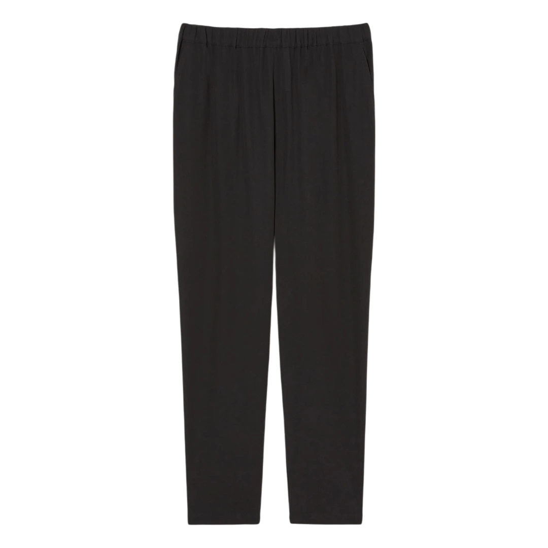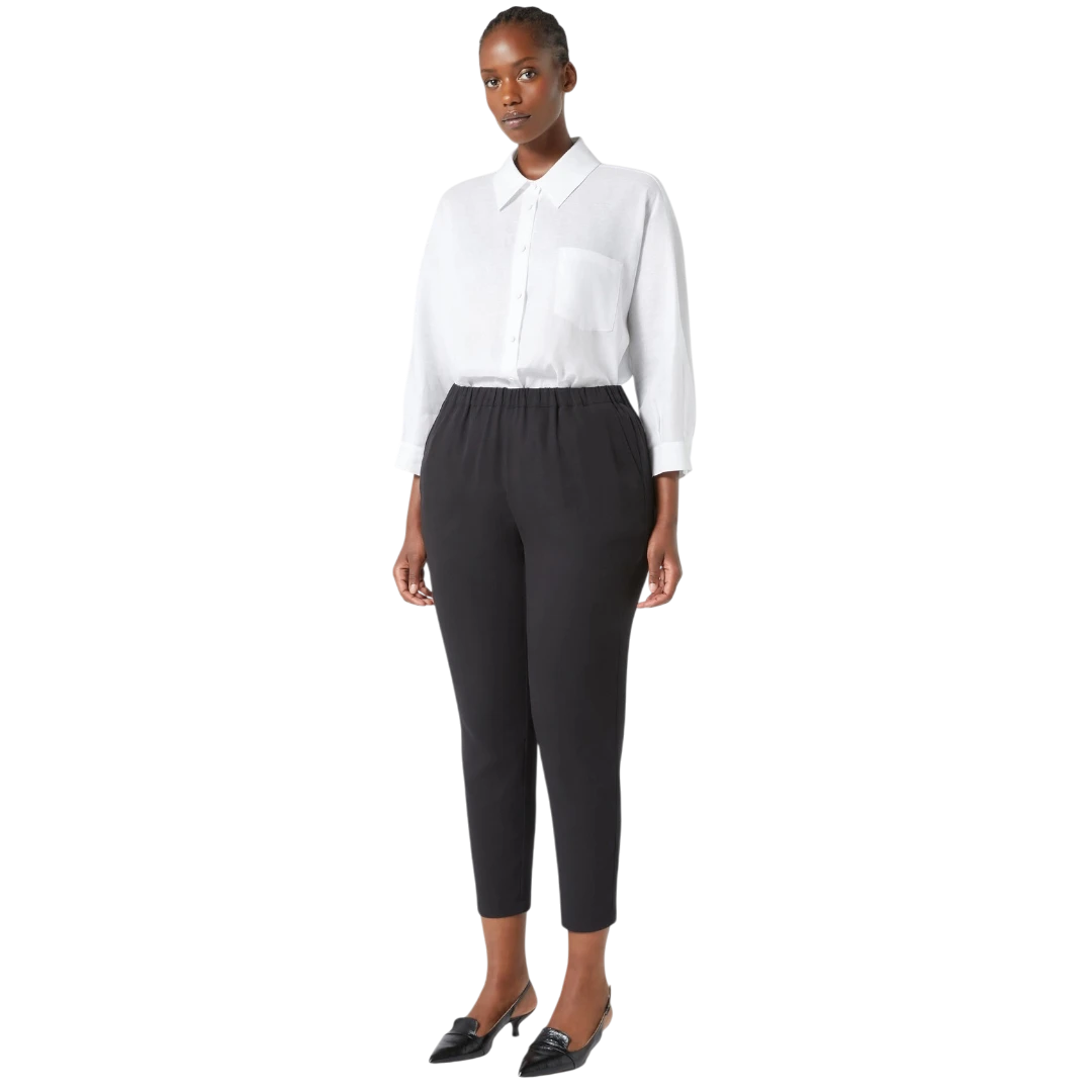 SKU: 40991Svestrane i lagane za kombinovanje, ove hlače od čistog pamučnog comfort crêpea pružaju opušten kroj i maksimalnu udobnost. Ukrašene ručno šivanim pick stitch detaljima, s elastičnim umecima u pojasu na leđima i kosim bočnim džepovima, idealne su za svakodnevno nošenje. Savršeno se uklapaju s pripadajućom tunikom za elegantan i skladan izgled.