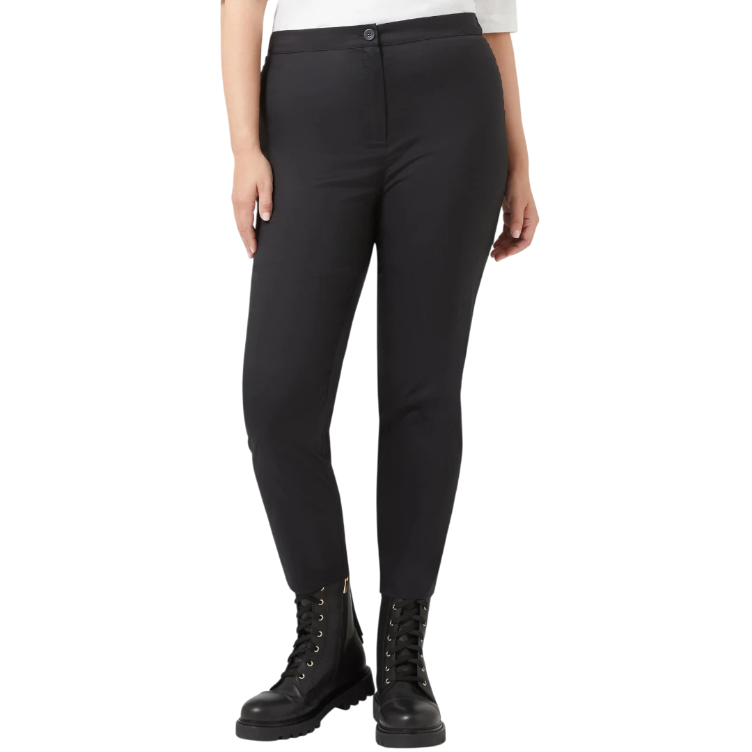Moderne i svestrane slim-fit hlače izrađene od udobnog pamučnog popelina, idealne za poslovne i ležerne kombinacije. Elastični pojas na leđima osigurava dodatnu udobnost, dok klasično kopčanje na dugme i rajsferšlus pruža elegantan završetak. Savršene za svakodnevni stil koji traži ravnotežu između udobnosti i sofisticiranosti.