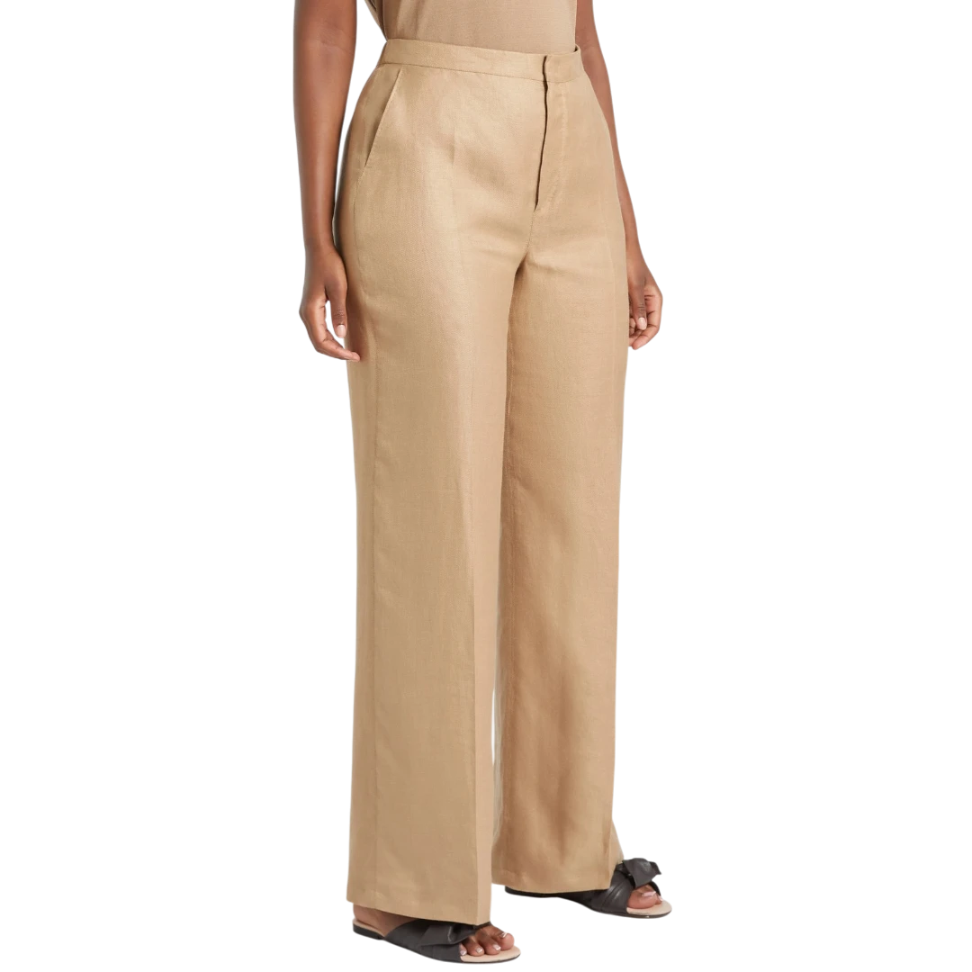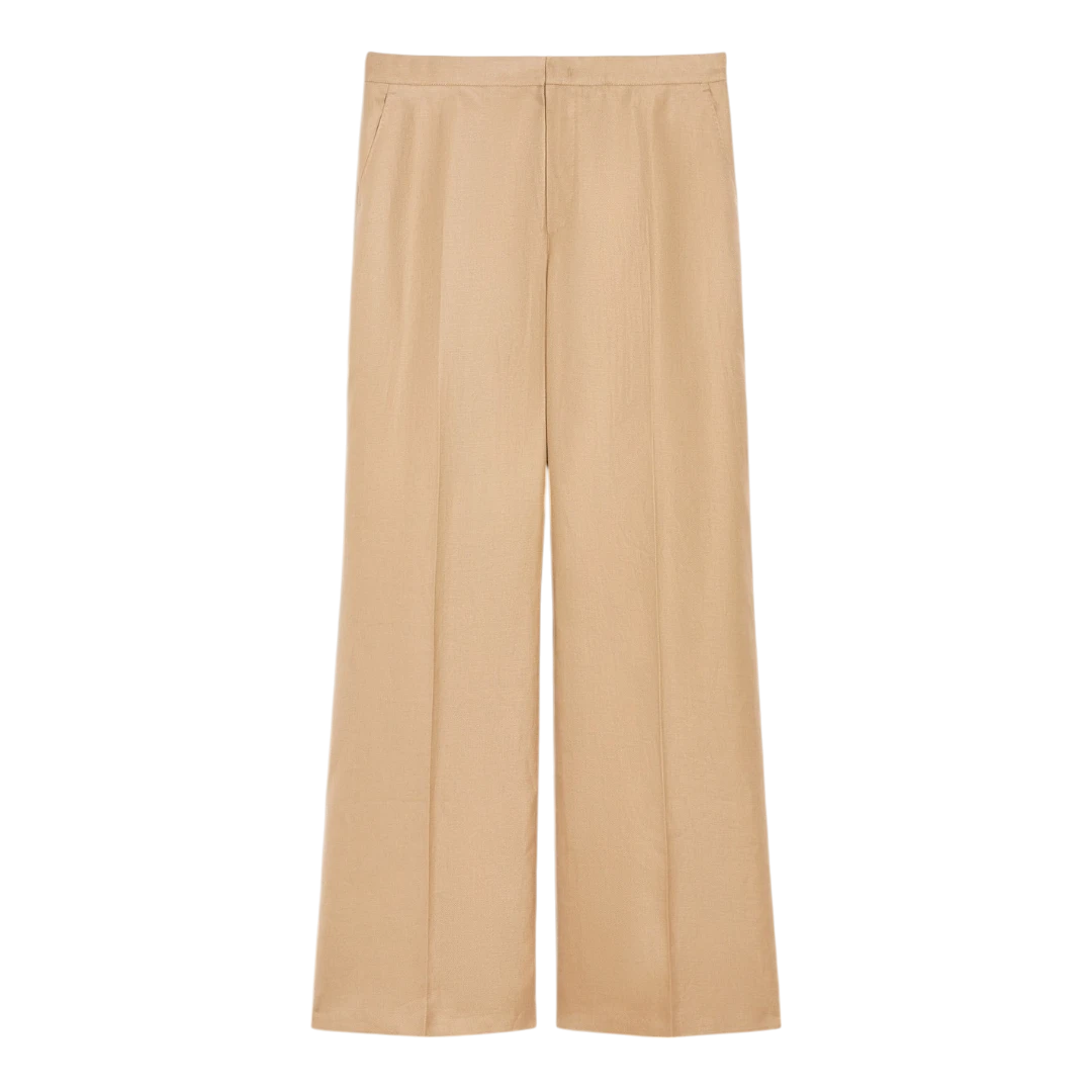 Upotpunite svoj stil ovim hlačama od teškog, opranog lana, idealnim za sezonu. Model opuštenog kroja sa širokim nogavicama donosi sofisticiranost inspirisanu muškim stilom, s kukicom i rajsferšlusom za uredno zatvaranje. Bočni kosi džepovi s krojačkim obrubom i elastični umetak na leđima osiguravaju udobnost i savršeno pristajanje. Za kompletan izgled, kombinujte ih s odgovarajućim sakoom.