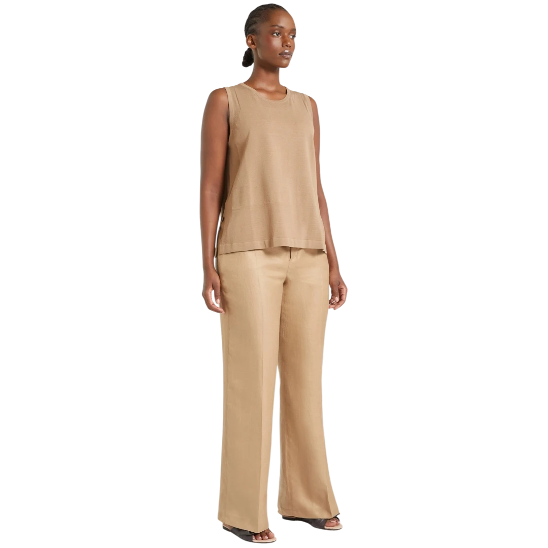 SKU: 40993Upotpunite svoj stil ovim hlačama od teškog, opranog lana, idealnim za sezonu. Model opuštenog kroja sa širokim nogavicama donosi sofisticiranost inspirisanu muškim stilom, s kukicom i rajsferšlusom za uredno zatvaranje. Bočni kosi džepovi s krojačkim obrubom i elastični umetak na leđima osiguravaju udobnost i savršeno pristajanje. Za kompletan izgled, kombinujte ih s odgovarajućim sakoom.