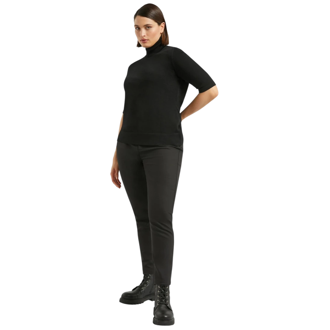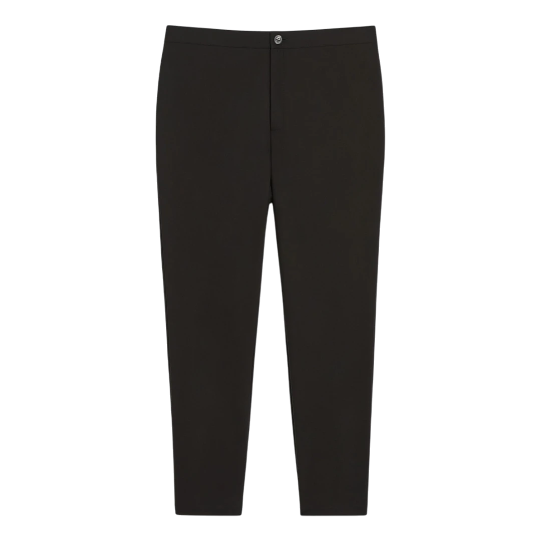 Slim-fit hlače od dvoslojnog pamučnog platna s jednostranim rastezanjem, savršene za svakodnevnu eleganciju i udobnost. Zahvaljujući elastičnom pojasu na leđima, model pruža savršeno pristajanje i lakoću nošenja. Kopčanje na dugme i rajsferšlus omogućava klasičan, uredan izgled. Svestrane i jednostavne za kombinovanje – idealne za brojne prilike.