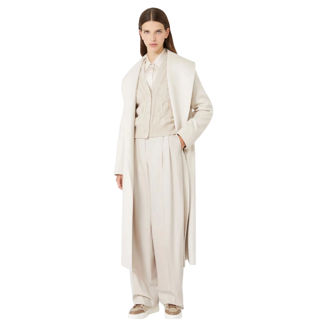 SKU: 46009Max Mara Studio kaput odiše bezvremenskom elegancijom i profinjenim minimalizmom. Izrađen od luksuzne, mekane tkanine, ovaj kaput u prefinjenoj bež nijansi naglašava ženstvenu siluetu širokim reverima i podesivim pojasom koji suptilno oblikuje struk. Čistih linija i savršeno krojen, predstavlja idealan izbor za moderne žene koje cijene sofisticiran stil i kvalitet. Savršen je za dnevne i večernje kombinacije, dodajući dozu luksuza svakom outfitu.