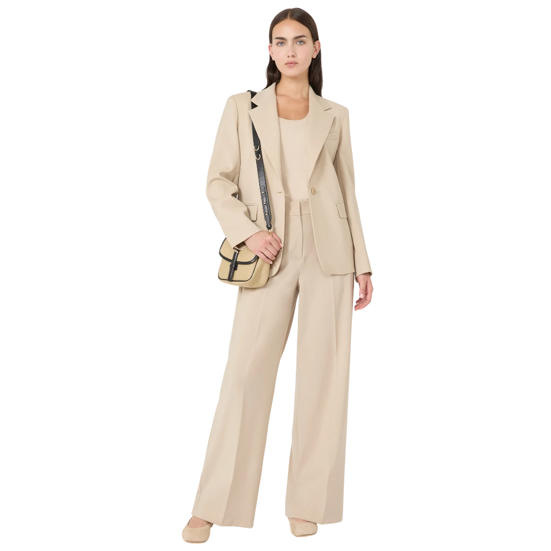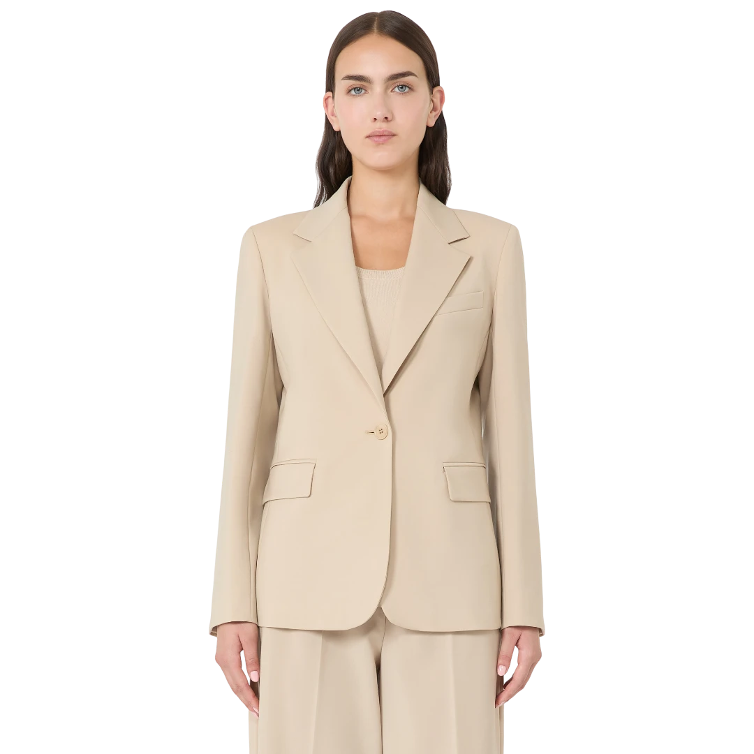 Ovaj bež sako iz Weekend Max Mara kolekcije donosi bezvremensku eleganciju i savršeno krojenje. Izrađen od kvalitetne, glatke tkanine, pruža udobnost i profinjen izgled tokom cijelog dana. Klasični reveri i jednoredno kopčanje jednim dugmetom naglašavaju čistu, ženstvenu siluetu, dok džepovi s preklopom i diskretni prsni džep dodaju sofisticirane detalje. Idealno se kombinuje s elegantnim pantalonama, suknjama ili farmerkama, čineći ga ključnim komadom garderobe za poslovne prilike, svečane trenutke ili chic dnevne outfite.