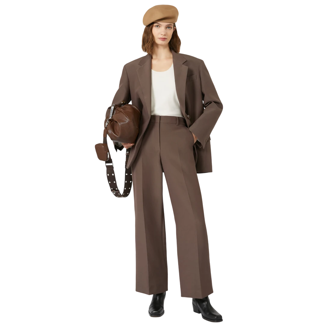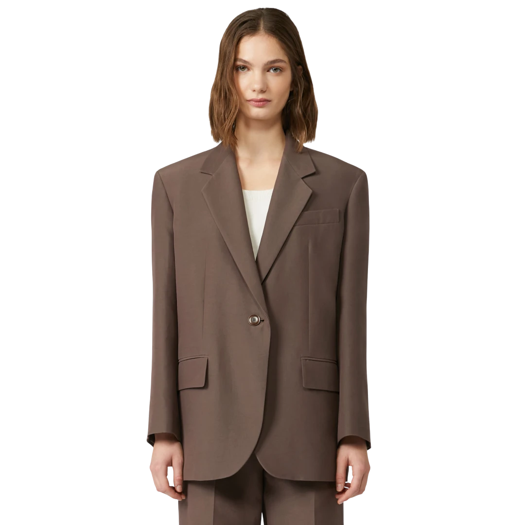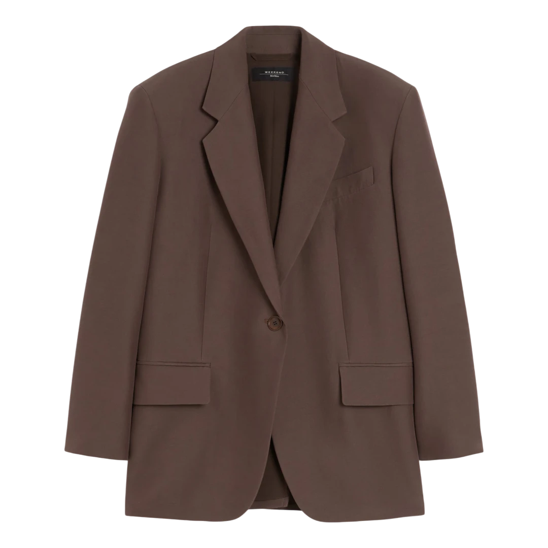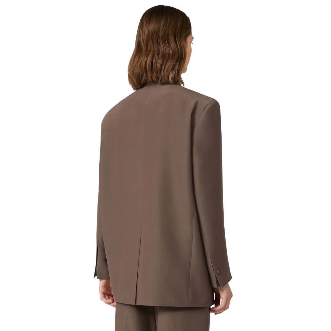 Ovaj smeđi sako iz Weekend Max Mara kolekcije predstavlja savršen spoj klasične elegancije i modernog kroja. Izrađen od kvalitetne, glatke tkanine, pruža profinjen izgled i udobnost tokom cijelog dana. Jednoredno kopčanje jednim dugmetom naglašava čistu siluetu, dok klasični reveri i džepovi s preklopom donose bezvremenski karakter. Blago oversized kroj omogućava lako kombinovanje – od poslovnih odijela do ležernih dnevnih outfita. Ovaj sako je ključni komad garderobe koji podiže svaku kombinaciju i naglašava prepoznatljivu sofisticiranost Weekend Max Mara brenda.