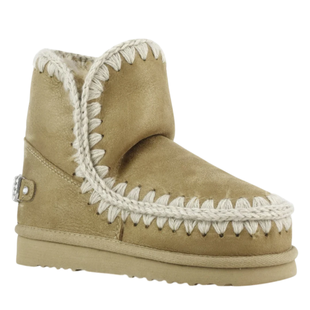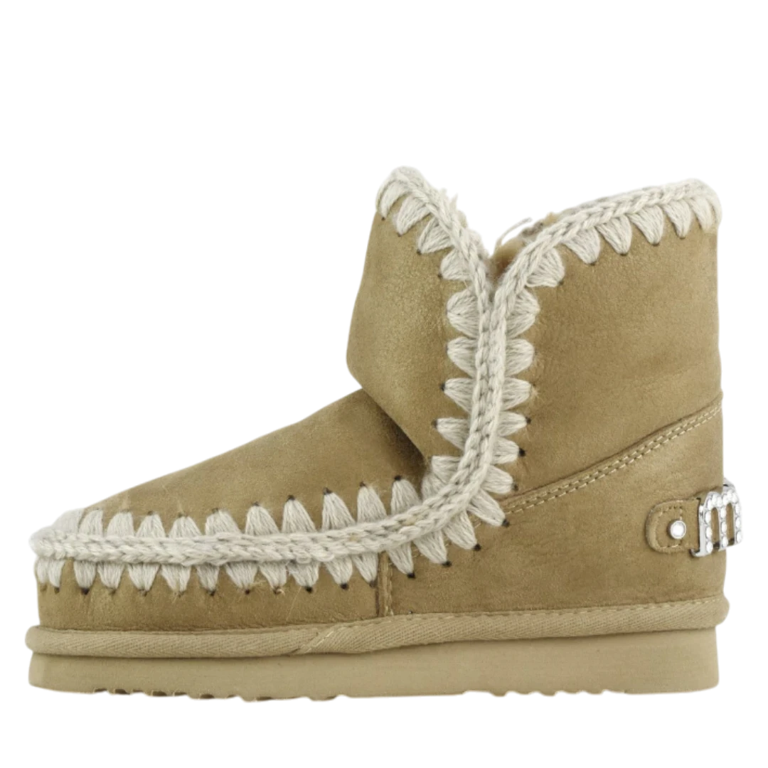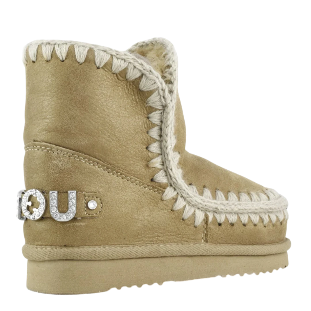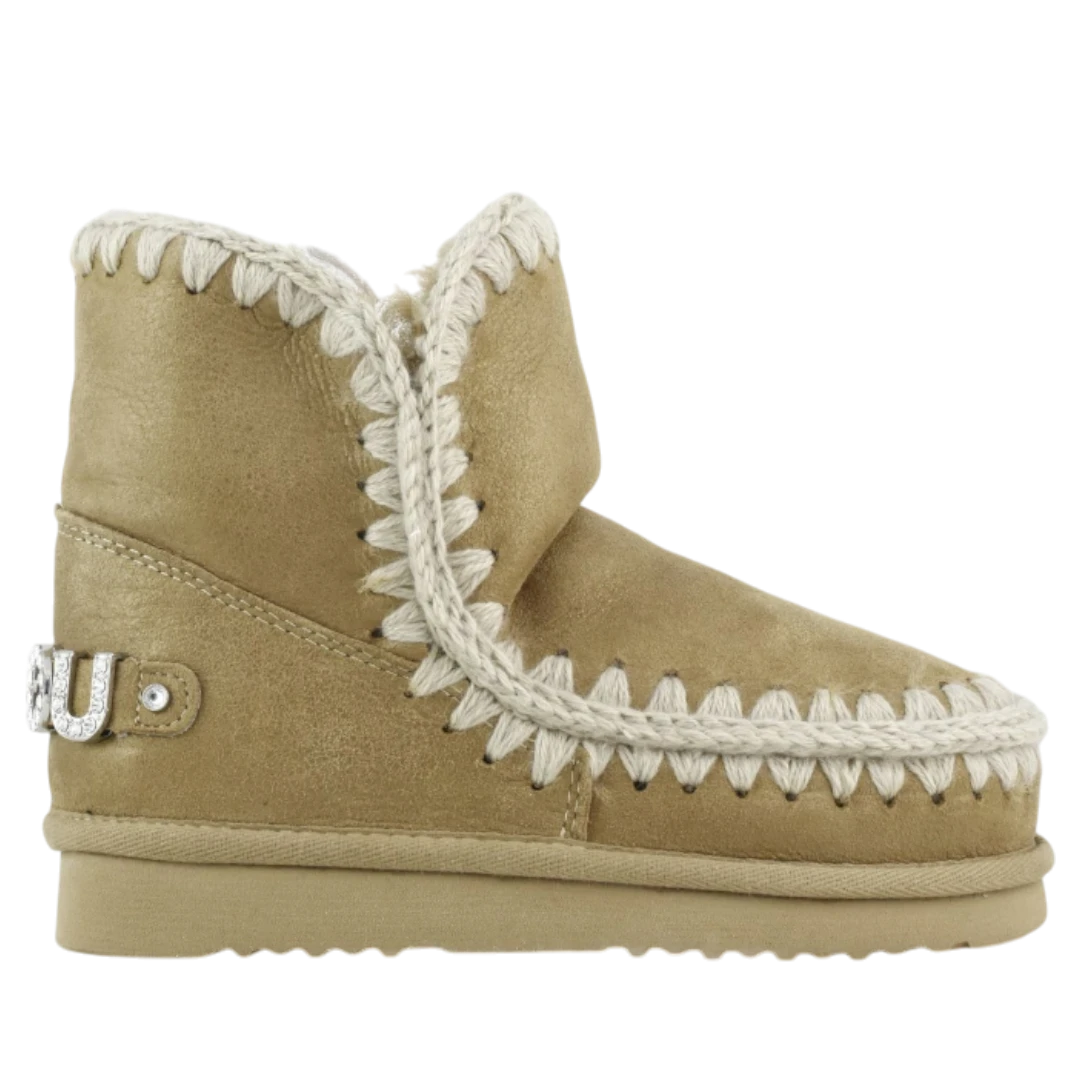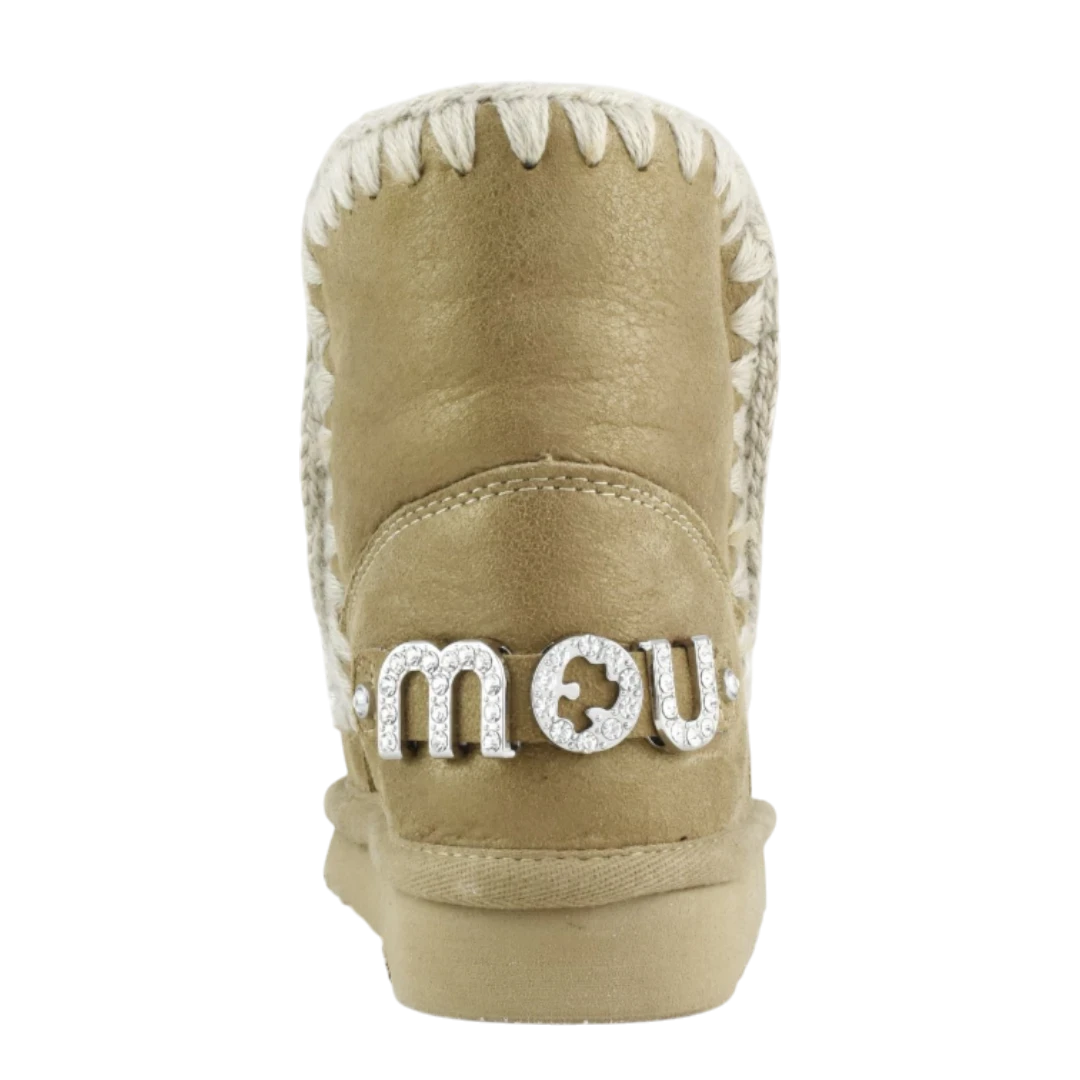 Zlatno-bež MOU gležnjače donose savršen spoj topline, luksuza i prepoznatljivog ručno rađenog dizajna. Izrađene od visokokvalitetne prirodne kože s nježnim metalik efektom, ističu se dekorativnim pletenim obrubom koji naglašava autentičan MOU stil. Unutrašnjost od prirodnog krzna pruža izuzetnu mekoću i udobnost, dok lagani gumeni đon osigurava stabilnost i praktičnost pri hodu. Diskretan sjajni MOU logo na peti dodaje dašak glamura, čineći ove gležnjače idealnim izborom za žene koje žele spoj topline, elegancije i bezvremenskog zimskog stila.