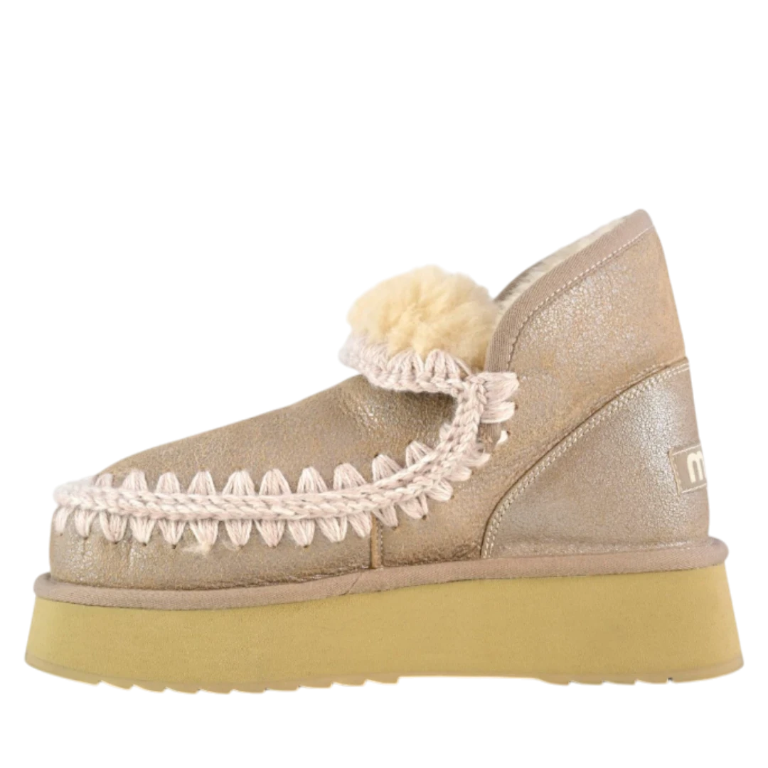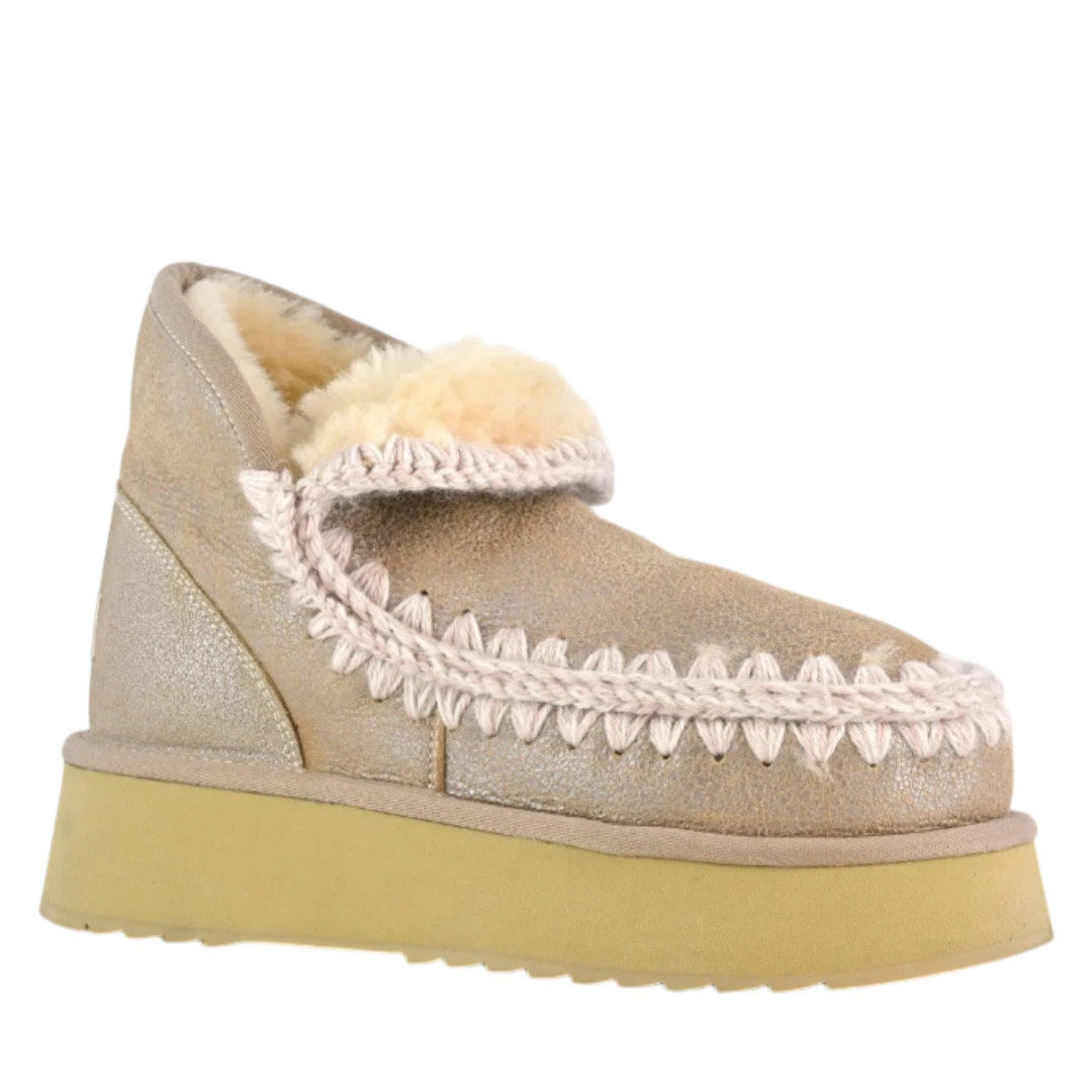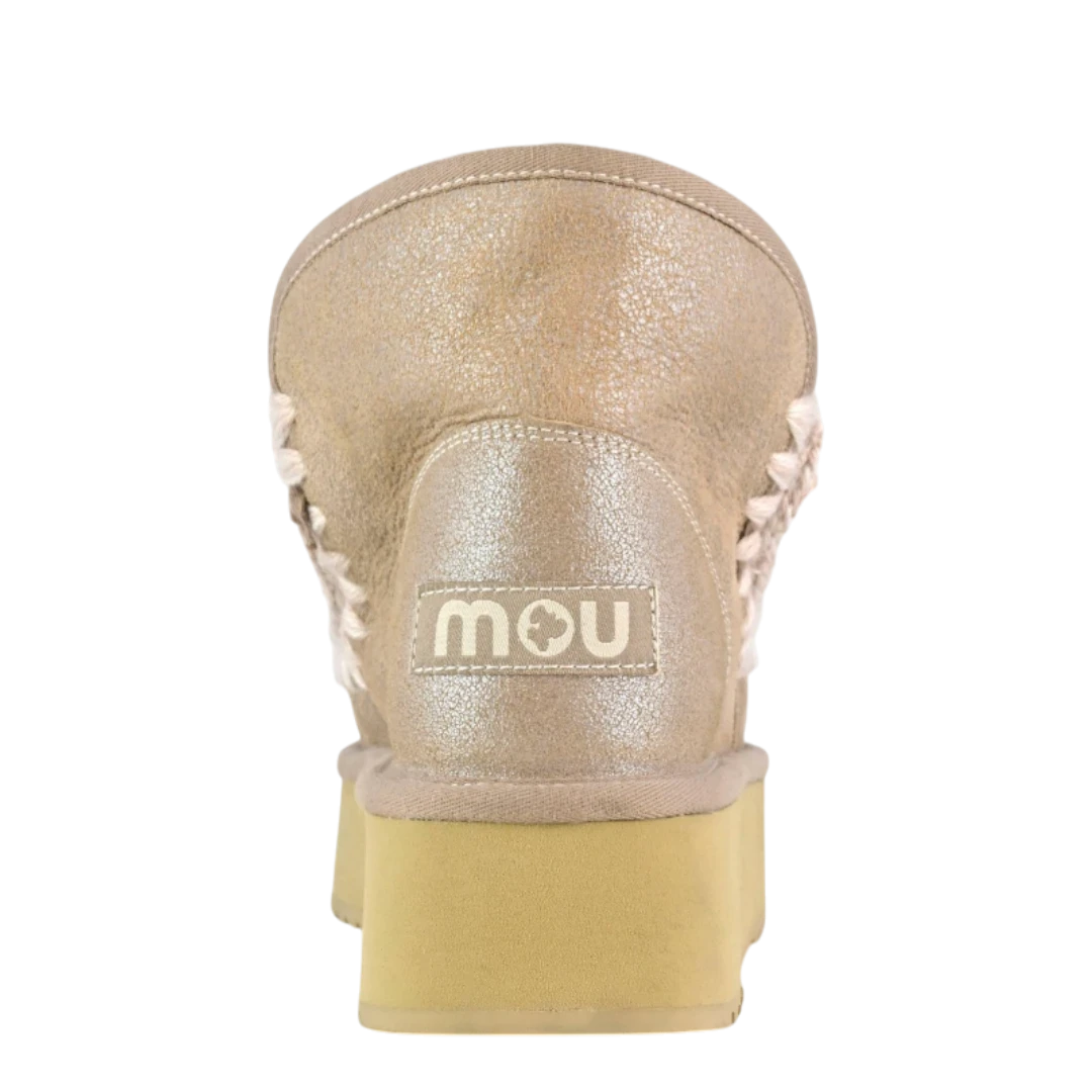 Bež MOU gležnjače odišu toplinom, udobnošću i sofisticiranim zimskim stilom. Ručno izrađene od prirodne kože s diskretnim metalik sjajem, ukrašene su prepoznatljivim pletenim detaljima koji brendu daju autentičan i luksuzan izgled. Unutrašnjost od mekane ovčje vune pruža izuzetnu toplinu i mekoću, dok lagani gumeni đon osigurava stabilnost i udobnost pri svakom koraku. Idealne za hladne zimske dane, ove gležnjače savršeno spajaju praktičnost i prefinjenu estetiku — pravi statement komad za ljubiteljice udobnog luksuza.