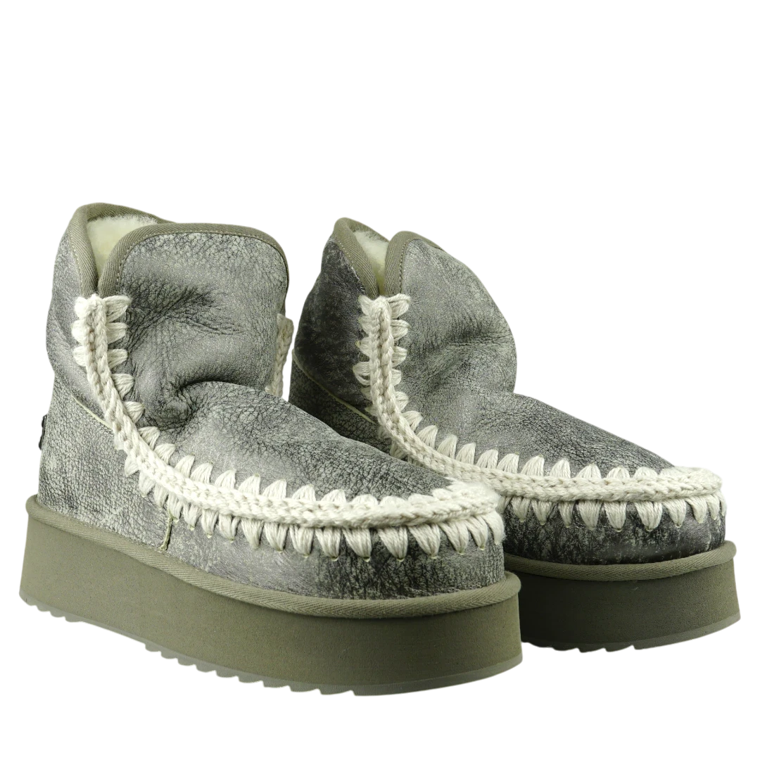 MOU gležnjače u prepoznatljivom zimskom stilu donose spoj luksuza, topline i udobnosti. Izrađene od visokokvalitetne prirodne kože s metalik efektom, pružaju moderan izgled uz izuzetnu otpornost na hladnoću. Ručno izrađeni pleteni rub u kontrastnoj boji naglašava autentičan karakter brenda, dok podstavljena unutrašnjost od mekane ovčje kože osigurava maksimalnu toplinu i udobnost. Debeli gumeni đon nudi stabilnost i lakoću pri hodu, što ove gležnjače čini idealnim izborom za gradske zimske dane u kojima želite izgledati moderno i osjećati se ugodno.