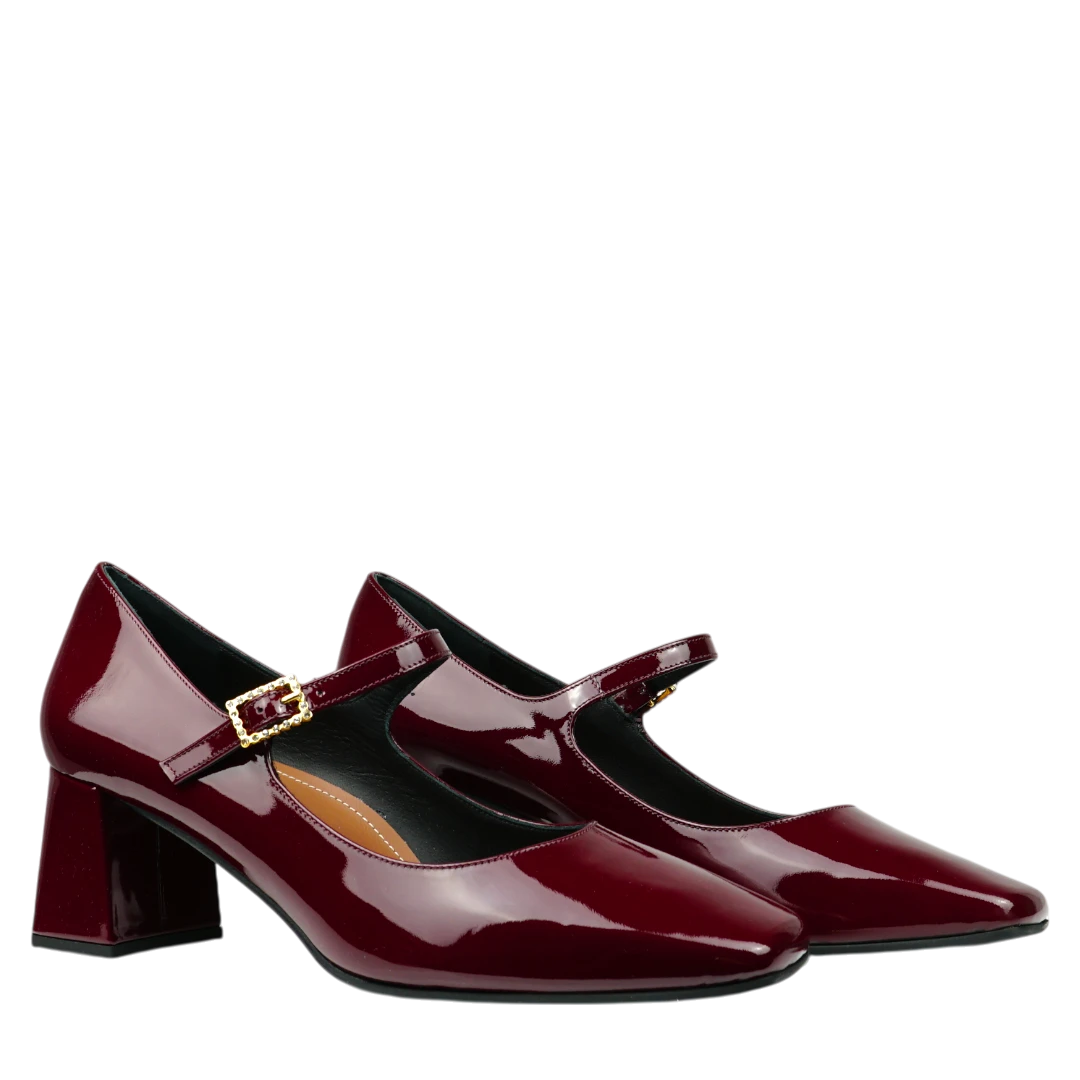 Elegantne i ženstvene, ove Musella cipele u bordo nijansi donose savršen spoj retro šarma i modernog dizajna. Izrađene od lakirane kože, odišu sofisticiranošću, dok stabilna blok potpetica pruža udobnost i sigurnost pri svakom koraku. Remen s diskretnom kopčom dodaje klasičan detalj koji naglašava ženstvenu siluetu. Idealne su za poslovne prilike, večernje kombinacije ili trenutke kada želite izgledati profinjeno, a osjećati se udobno.