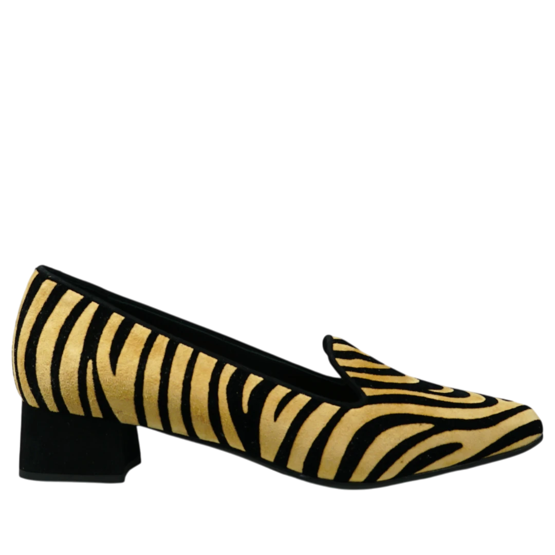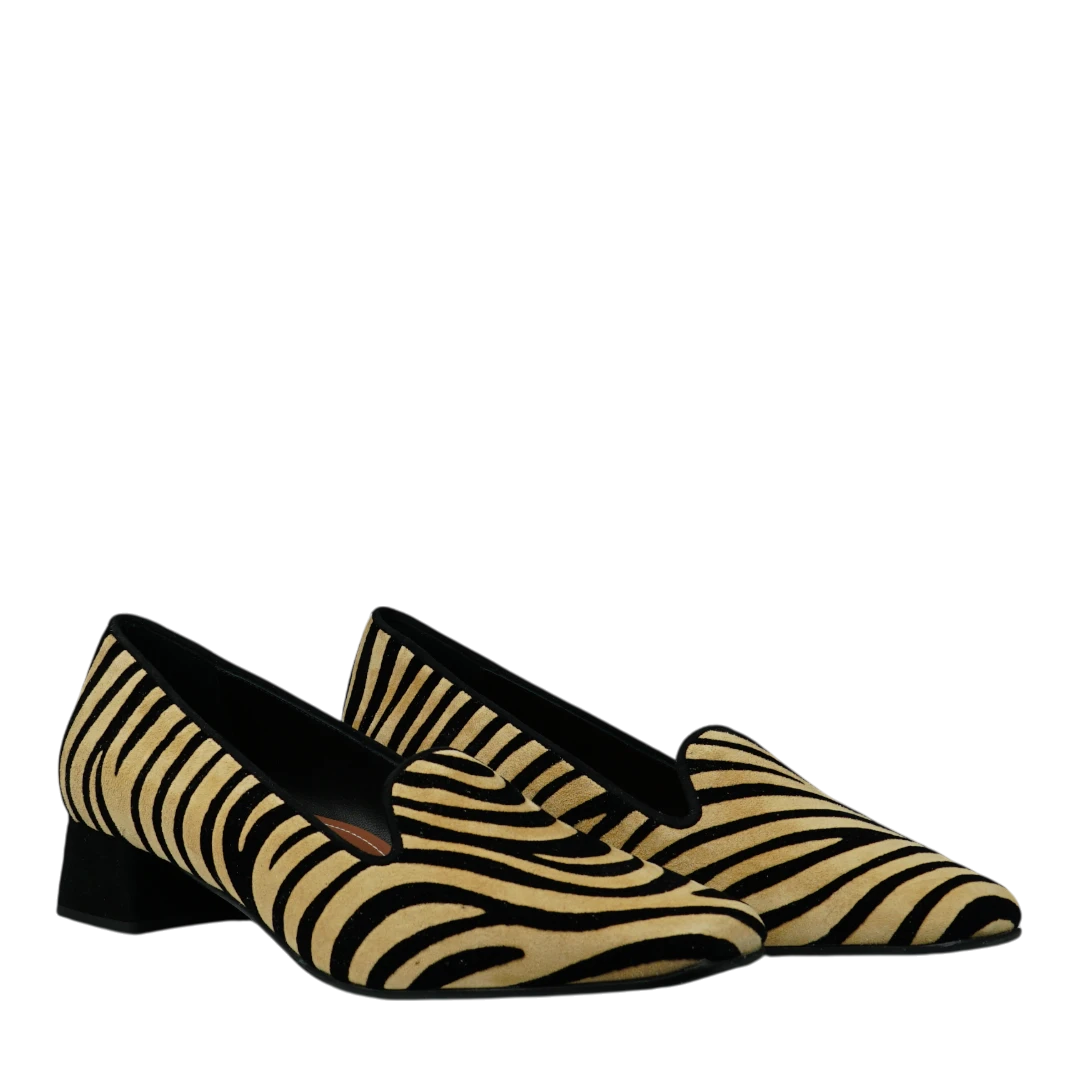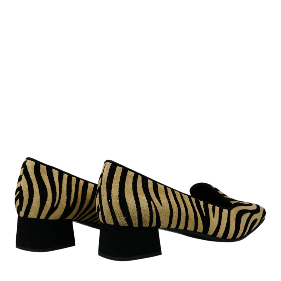 Ove Musella cipele s animal print uzorkom donose odvažan spoj stila i elegancije. Izrađene od mekog materijala koji imitira teksturu brušene kože, ističu se crno-bež prugama koje unose dozu dinamike i modernog karaktera. Niski blok potpetica osigurava udobnost i stabilnost tokom dana, dok upečatljiv dezen čini ove cipele savršenim izborom za žene koje vole klasične siluete s modernim twistom. Idealne su za trenutke kada želite da vaš outfit odiše samopouzdanjem i prepoznatljivim stilom.