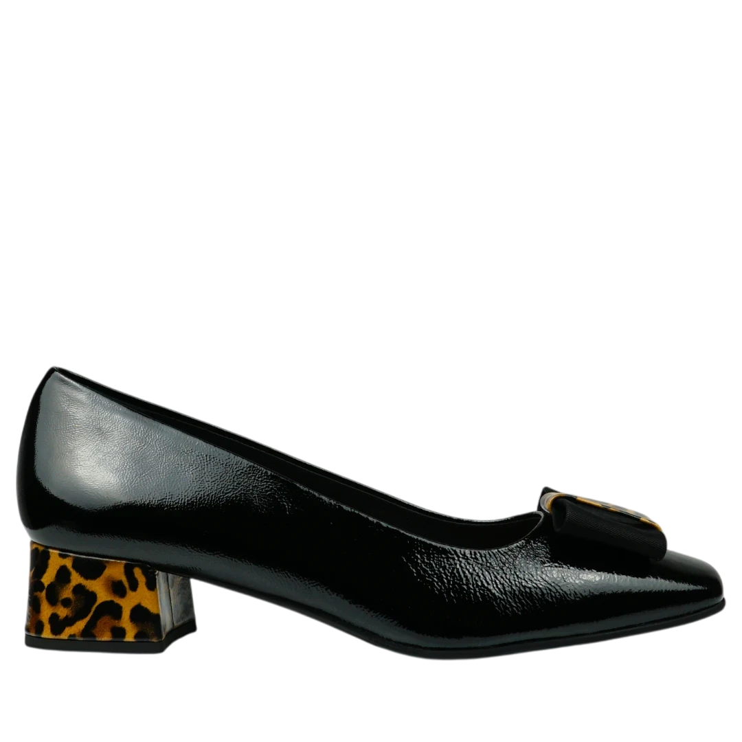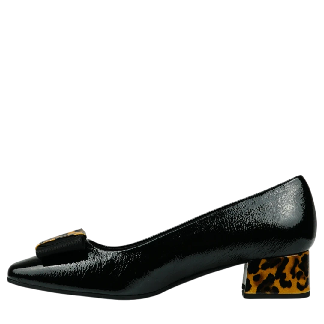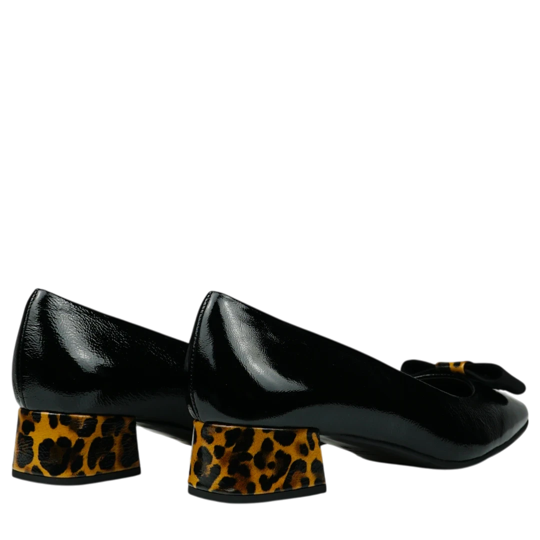 Ove Musella cipele u klasičnoj crnoj boji donose spoj elegancije i modernog karaktera. Lakirana koža daje im sofisticiran sjaj, dok blok potpetica s leopard uzorkom unosi upečatljiv i modno odvažan detalj. Dekorativna kopča na prednjem dijelu dodatno naglašava ženstvenost i prefinjenost modela. Zahvaljujući niskoj potpetici i udobnom kroju, ove cipele idealne su za svakodnevno nošenje, ali i za trenutke kada želite da vaš outfit odiše samopouzdanjem i stilom.