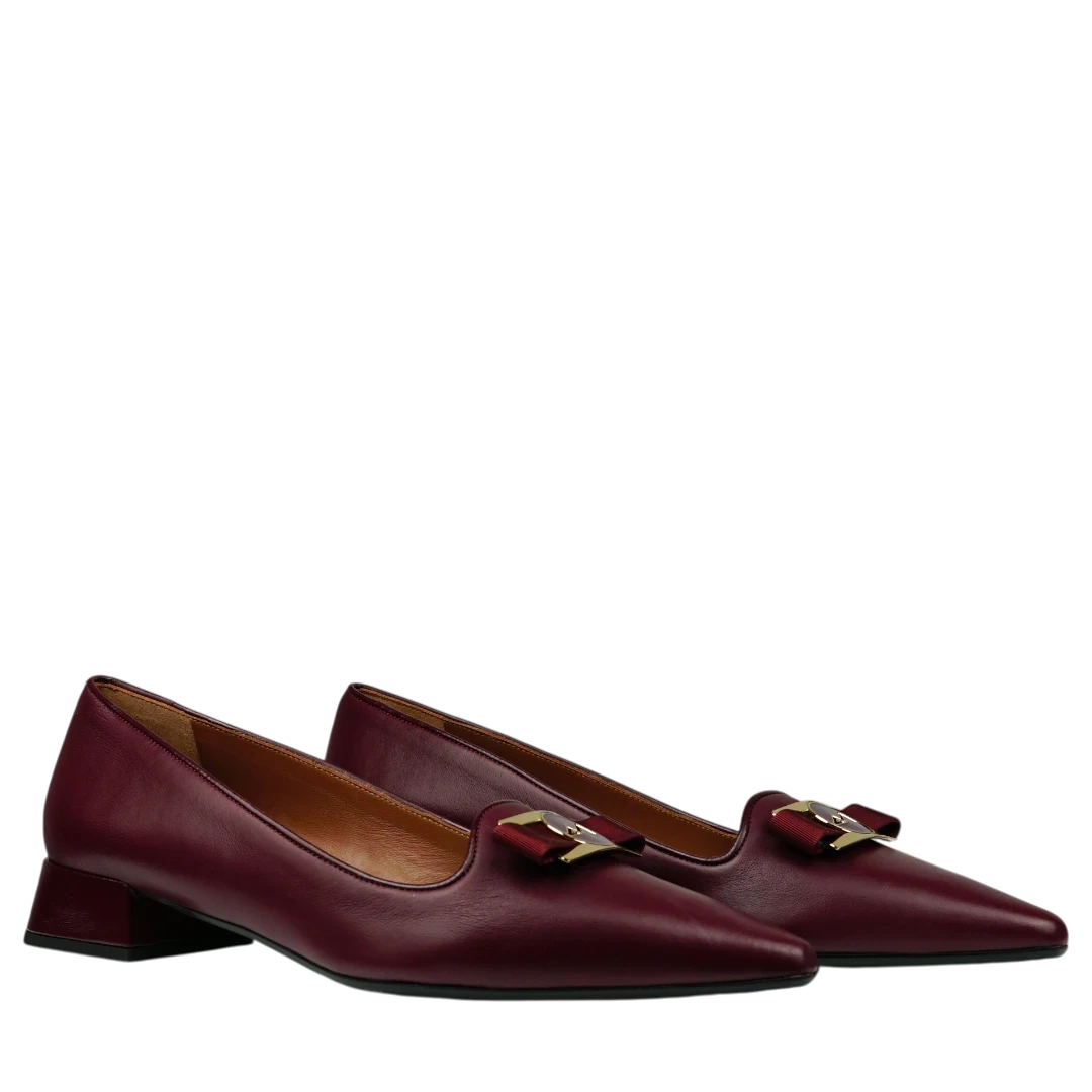 Ove Musella cipele u bordo nijansi odišu bezvremenskom elegancijom i profinjenošću. Izrađene od mekane kože, ističu se minimalističkim dizajnom sa suptilnim detaljem kopče koji dodaje dozu luksuza. Niski blok potpetica pruža udobnost i stabilnost, čineći ih idealnim izborom za svakodnevno nošenje, poslovne prilike ili večernje kombinacije. Zahvaljujući bogatoj boji i klasičnom kroju, ove cipele lako postaju onaj svestrani komad koji nadopunjuje svaki stil sa sofisticiranim završetkom.