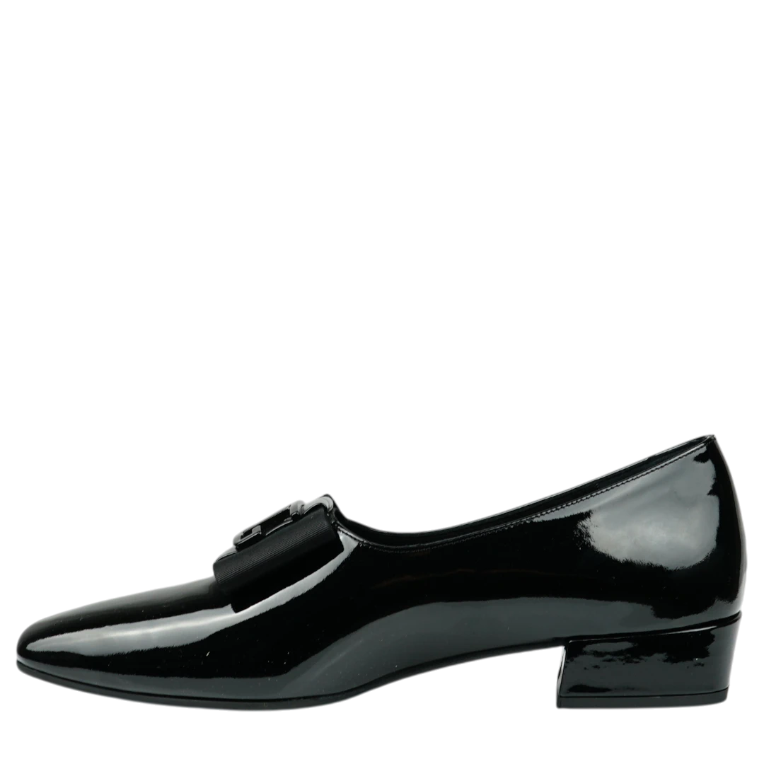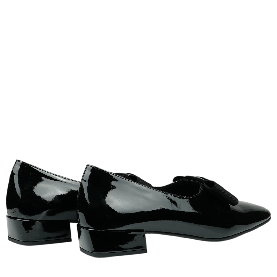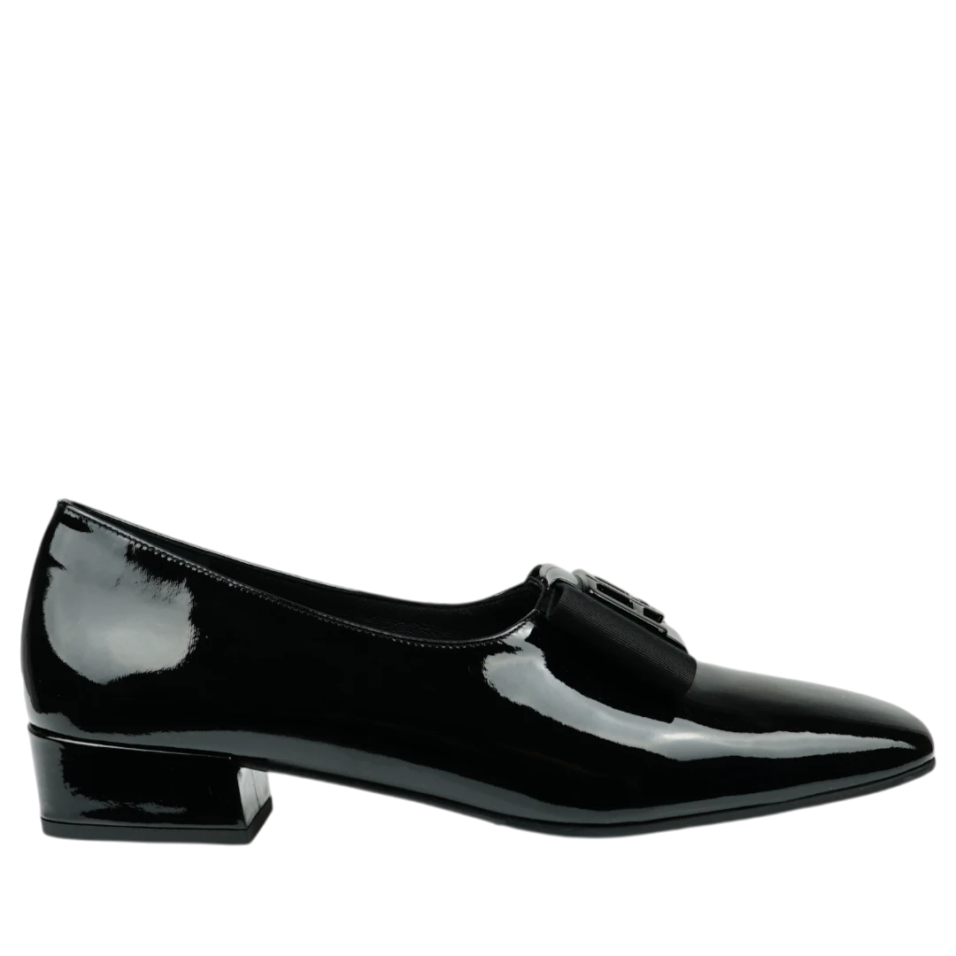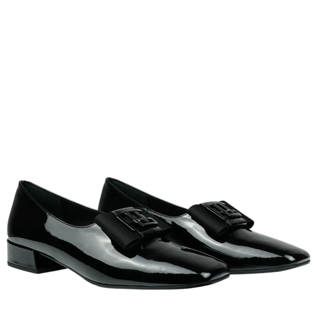 Ove Musella cipele u klasičnoj crnoj lak koži utjelovljuju eleganciju u njenom najčišćem obliku. Sjajna površina daje im sofisticiran izgled, dok ukrasna mašna na prednjem dijelu dodaje notu ženstvenosti i profinjenog stila. Niski blok potpetica pruža udobnost i stabilnost, čineći ih savršenim izborom za duge dane u pokretu ili večernje prilike koje traže diskretnu eleganciju. Bezvremenski dizajn ovih cipela čini ih nezaobilaznim dijelom svake moderne garderobe.