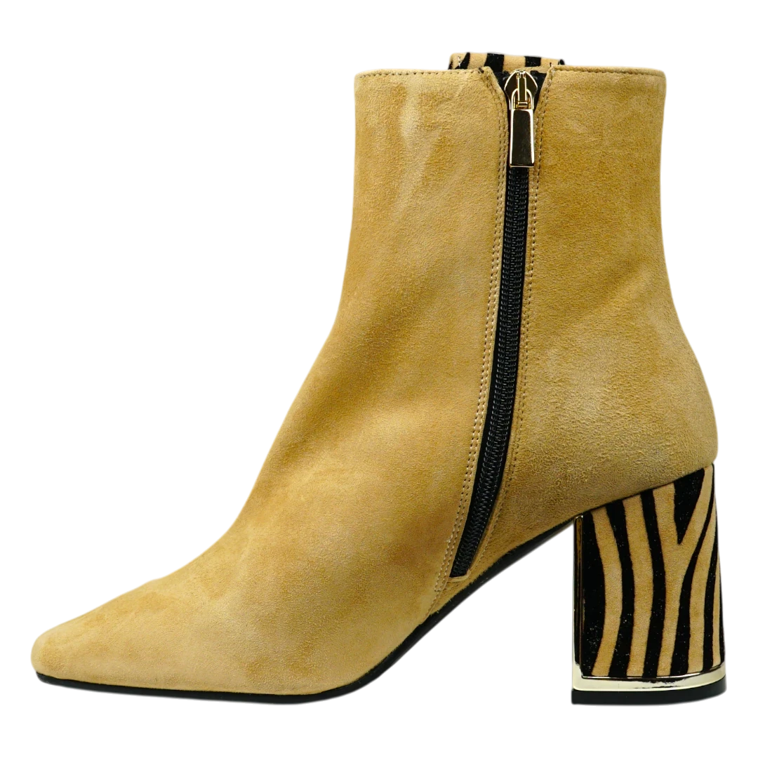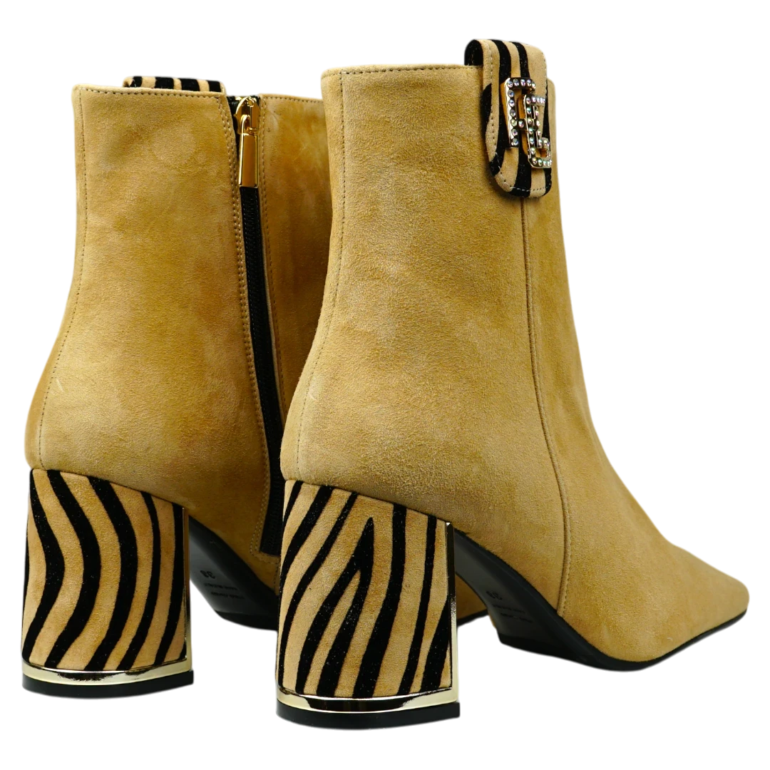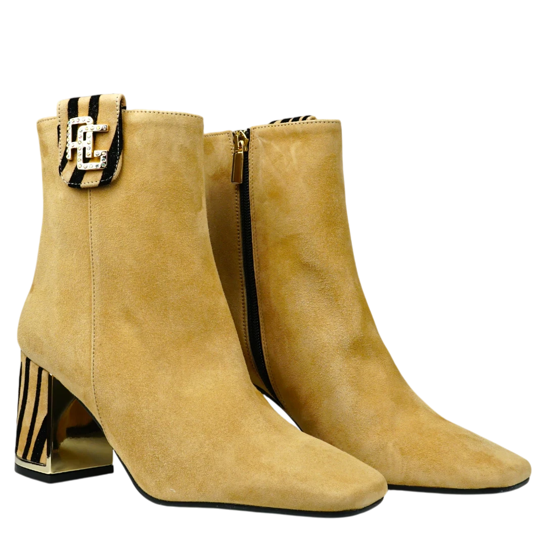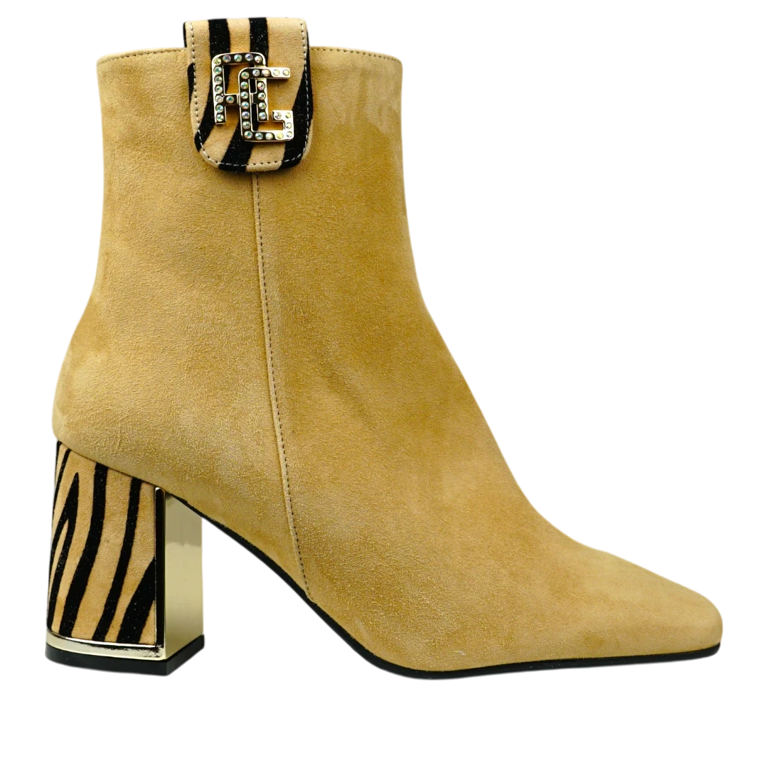 Ove Musella gležnjače u bež nijansi donose savršen spoj luksuza i sofisticiranog dizajna. Izrađene od fine brušene kože, ističu se upečatljivim potpeticama s animal print detaljem i elegantnim zlatnim akcentima. Gornji dio ukrašava prepoznatljiva kopča sa sjajnim ukrasima koja unosi notu glamura. Zahvaljujući stabilnoj potpetici i profinjenom obliku, ove gležnjače podižu svaku kombinaciju — od klasične elegancije do modernog chic izgleda. Savršene su za žene koje vole luksuz u svakom detalju.