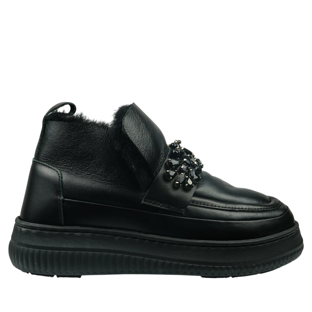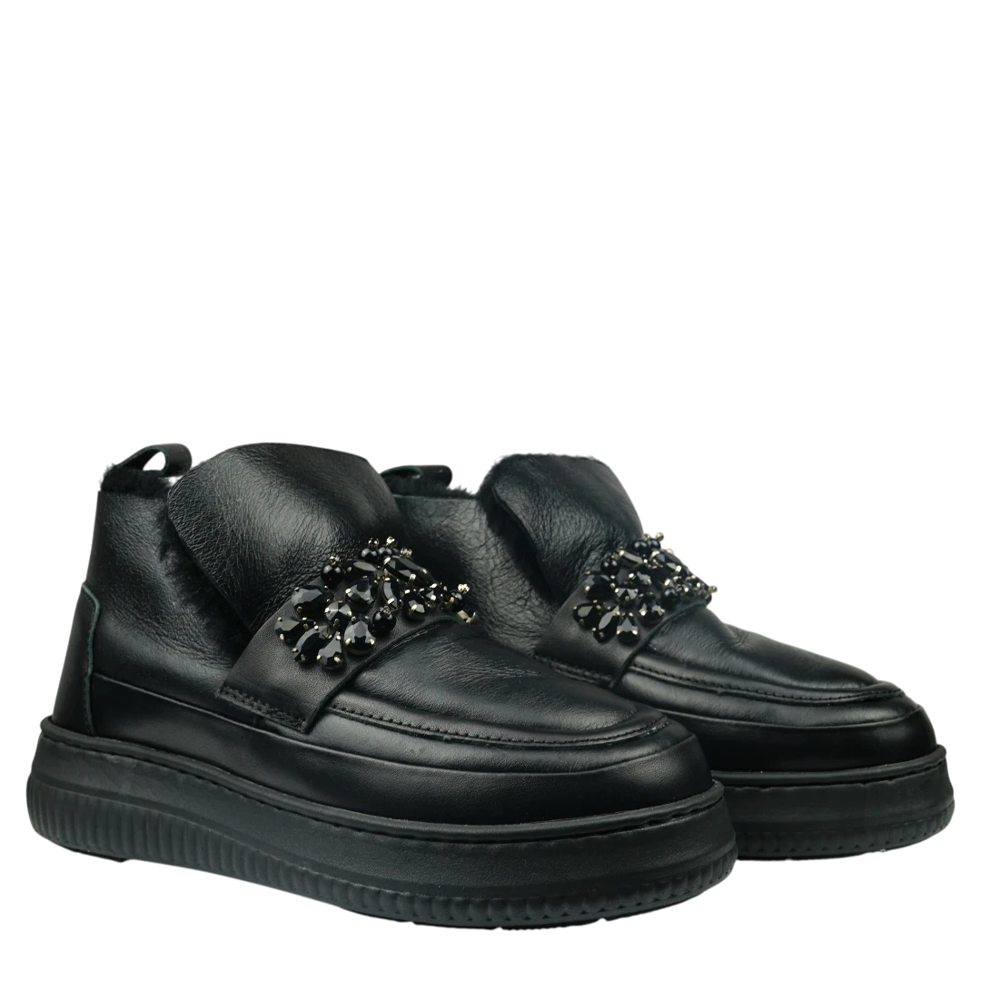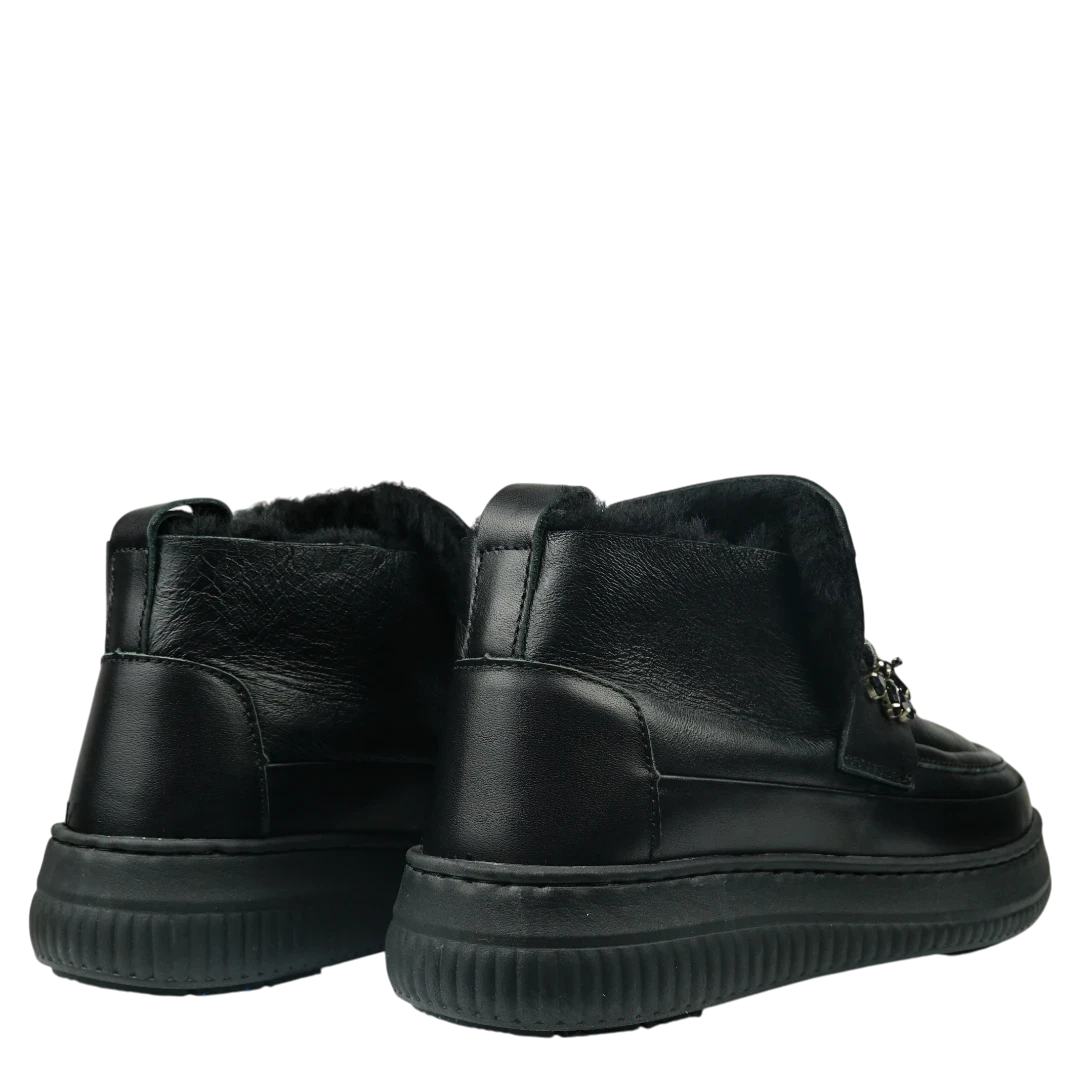 Ove Nanku gležnjače u crnoj boji donose savremeni luksuz i maksimalnu udobnost za hladne dane. Izrađene od mekane prirodne kože, s unutrašnjošću obloženom toplim krznom, pružaju savršen osjećaj mekoće i topline. Prednji dio krasi ukrasna aplikacija s crnim kamenčićima, koja modelu daje sofisticiran i moderan izgled. Povišeni gumeni đon nudi stabilnost i lakoću pri hodu, dok minimalistički dizajn s prepoznatljivim Nankü potpisom čini ove gležnjače idealnim izborom za elegantne, urbane zimske outfite.