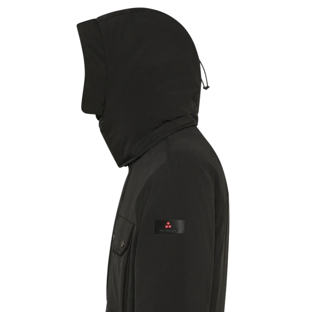 Peuterey muška jakna u klasičnoj crnoj boji odlikuje se besprijekornim spojem urbanog dizajna i tehničke sofisticiranosti. Napravljena od otpornog, vodootpornog materijala s mat efektom, pruža zaštitu od vjetra i kiše, dok toplo punjenje osigurava maksimalnu udobnost i toplinu u hladnim danima. Model je inspirisan vojničkim parka krojem i opremljen je kapuljačom s ojačanim rubom, četiri funkcionalna prednja džepa te skrivenim patentnim zatvaračem s dodatnim kopčanjem. Diskretan Peuterey logo na rukavu simbol je kvalitete, stila i italijanskog nasljeđa. Jakna je idealna za muškarce koji cijene eleganciju i praktičnost u svakodnevnim zimskim kombinacijama.