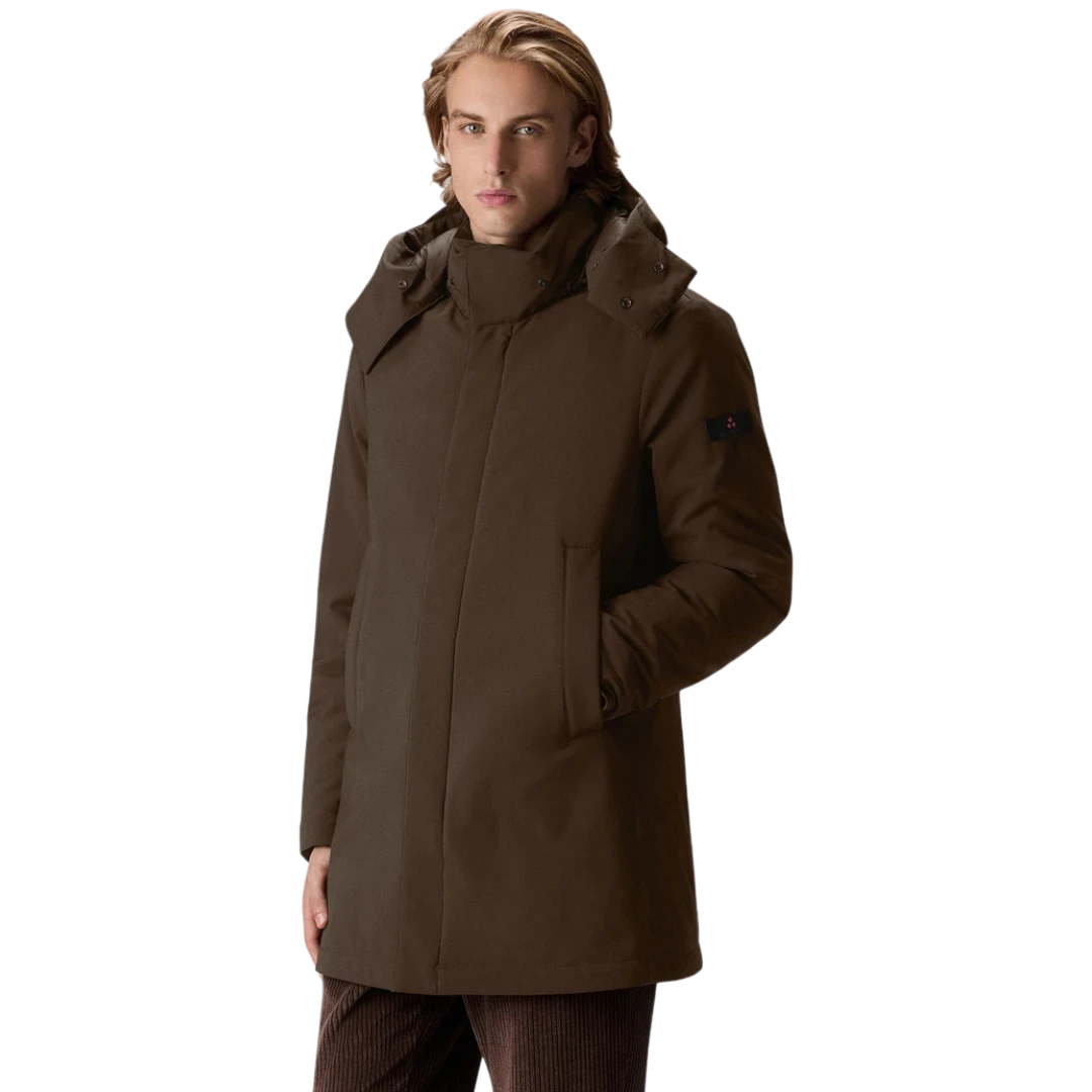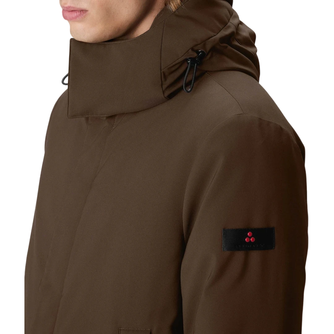 Peuterey muška jakna u elegantnoj smeđoj nijansi spaja moderni minimalizam i vrhunsku funkcionalnost. Izrađena od tehničkog, vodootpornog i prozračnog materijala, pruža pouzdanu zaštitu od vjetra i hladnoće, dok lagano termo punjenje osigurava savršenu toplinu i udobnost tokom zimskih dana. Model je dizajniran s visokim ovratnikom i odvojivom kapuljačom, te skrivenim patentnim zatvaračem i bočnim džepovima koji dodatno naglašavaju čistu liniju i urbani karakter. Suptilan Peuterey logo na rukavu potvrđuje luksuznu estetiku brenda – idealan izbor za muškarce koji preferiraju elegantnu jednostavnost i besprijekornu izradu.