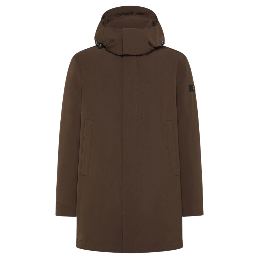SKU: 45916Peuterey muška jakna u elegantnoj smeđoj nijansi spaja moderni minimalizam i vrhunsku funkcionalnost. Izrađena od tehničkog, vodootpornog i prozračnog materijala, pruža pouzdanu zaštitu od vjetra i hladnoće, dok lagano termo punjenje osigurava savršenu toplinu i udobnost tokom zimskih dana. Model je dizajniran s visokim ovratnikom i odvojivom kapuljačom, te skrivenim patentnim zatvaračem i bočnim džepovima koji dodatno naglašavaju čistu liniju i urbani karakter. Suptilan Peuterey logo na rukavu potvrđuje luksuznu estetiku brenda – idealan izbor za muškarce koji preferiraju elegantnu jednostavnost i besprijekornu izradu.