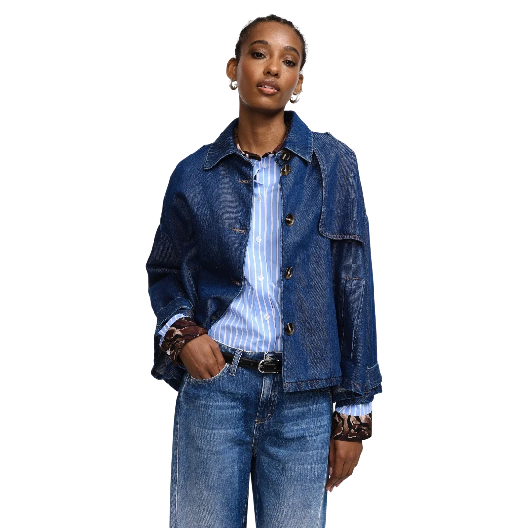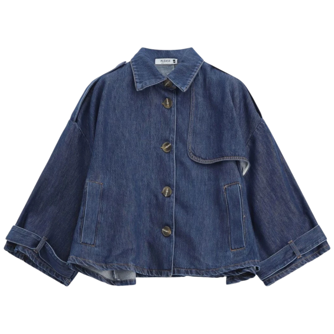 Ova Please jeans jakna spaja urbani karakter i opuštenu eleganciju italijanskog stila. Izrađena od mekanog, kvalitetnog denima, ističe se oversized krojem, širokim rukavima i asimetričnim detaljem na prednjem dijelu koji joj daje moderan i pomalo avangardan izgled. Kombinuje se savršeno uz traperice, suknje ili haljine, stvarajući effortless chic stil koji je zaštitni znak brenda Please. Idealna je za svakodnevne modne kombinacije – udobna, trendi i izražajno autentična.