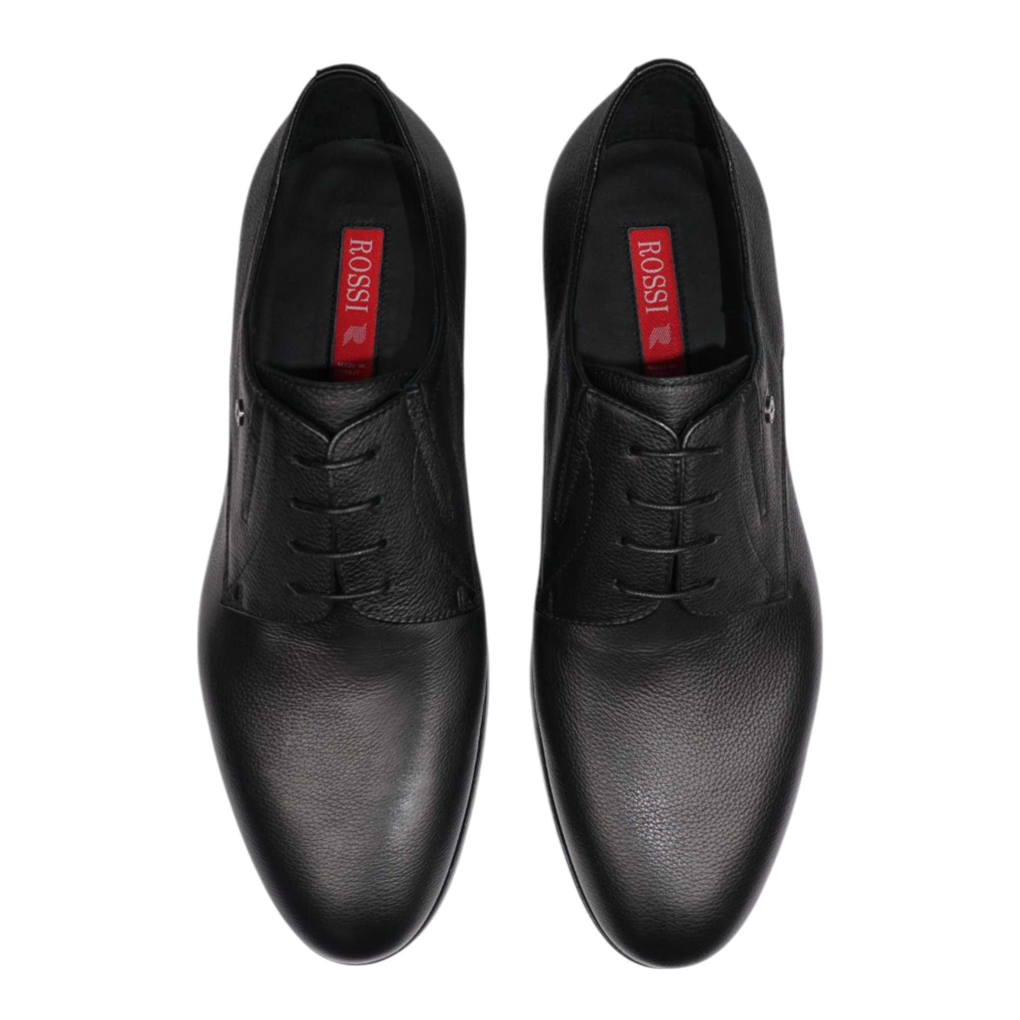 Ove muške Rossi cipele izrađene su od kvalitetne crne prirodne kože s blagom teksturom, koja pruža sofisticiran izgled i izuzetnu udobnost. Klasičan model na pertlanje savršen je izbor za poslovne, formalne i večernje kombinacije. Minimalistički dizajn i čista silueta omogućuju lako kombinovanje s različitim odjevnim stilovima, dok čvrst gumeni đon pruža stabilnost i dugotrajnost. Elegantne i funkcionalne, ove cipele su nepogrešiv izbor za svakog modernog muškarca.