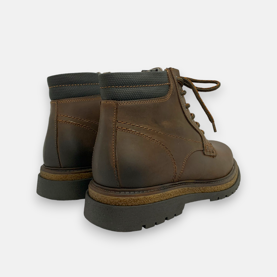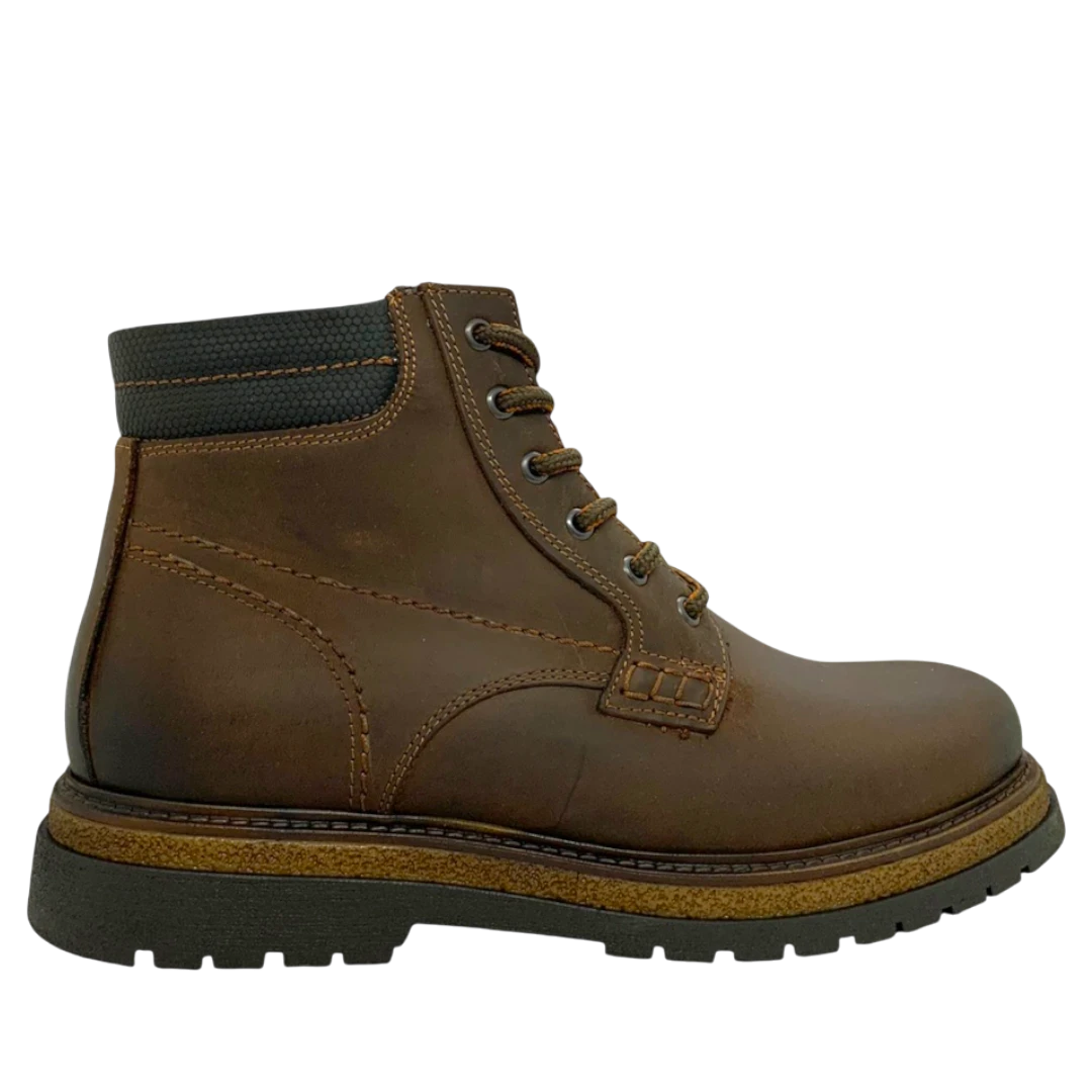 Ove klasične muške gležnjače izrađene su od izdržljive smeđe kože koja pruža stabilnost i dugotrajnost u svakodnevnoj upotrebi. Podignuti, mekani dio oko zgloba osigurava udobnost pri hodu, dok čvrsti đon s dubokim profilom garantuje dobro prianjanje na različitim podlogama. Diskretni šavovi i jednostavan dizajn čine ih idealnim izborom za muškarce koji traže praktičnu, pouzdanu i svestranu obuću za hladnije dane.