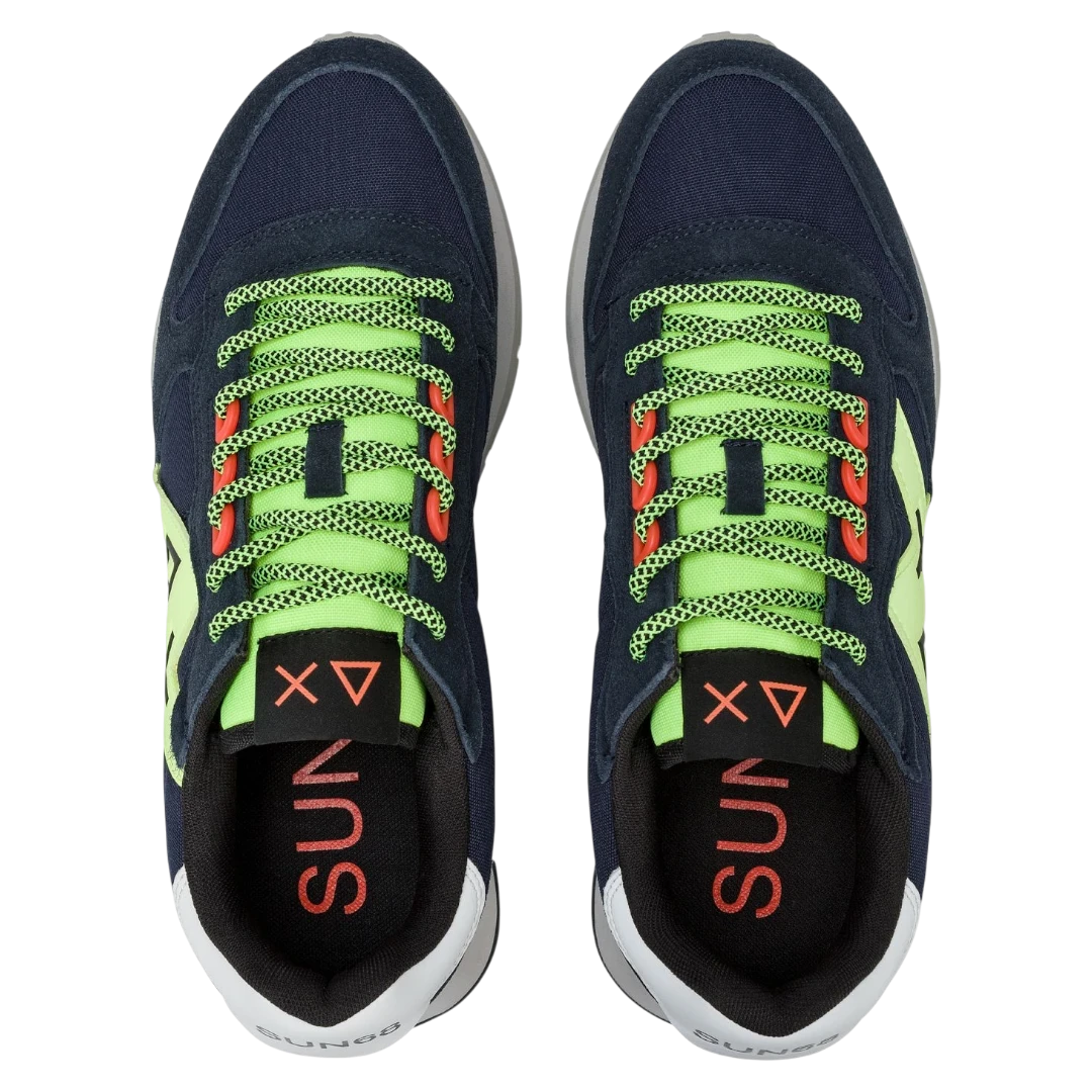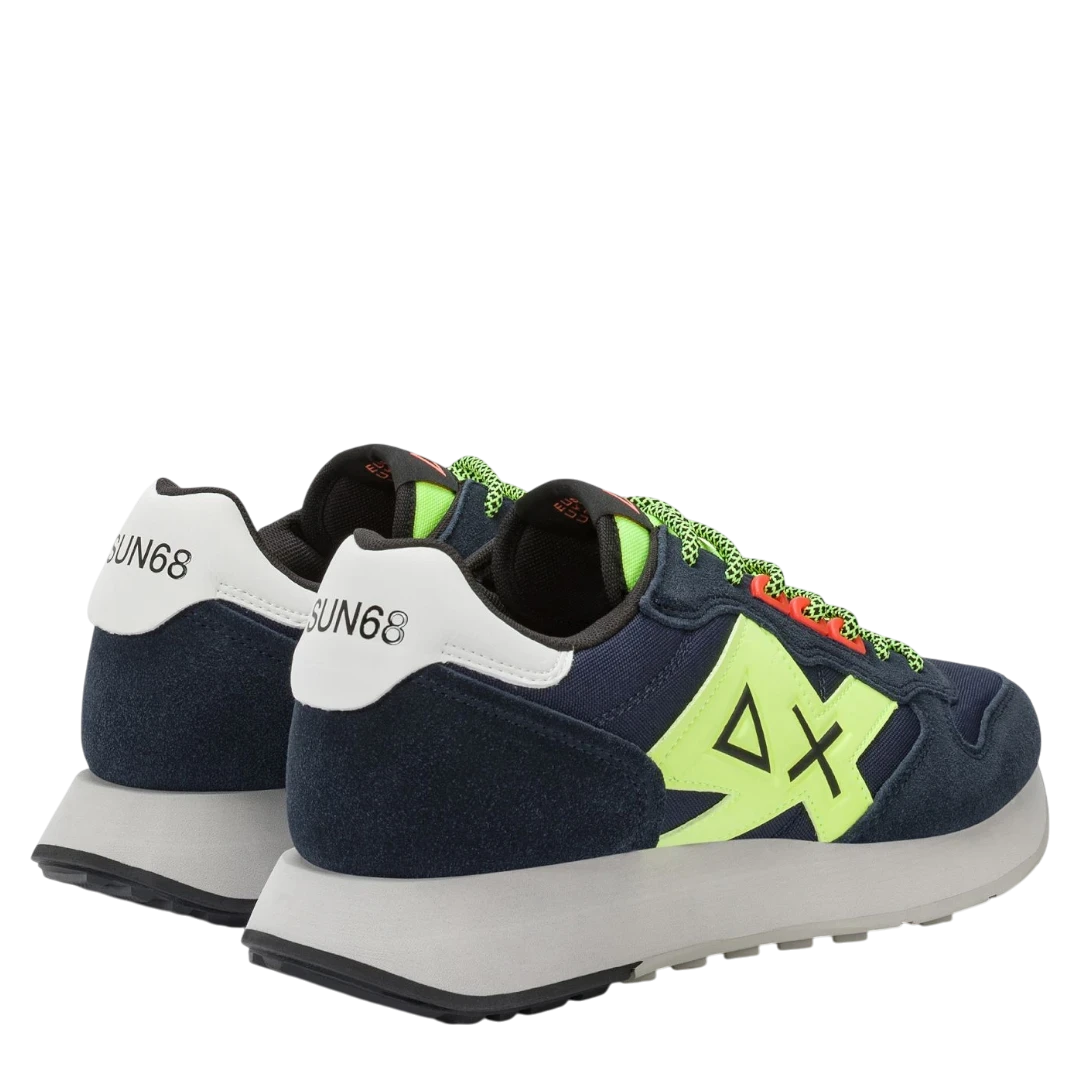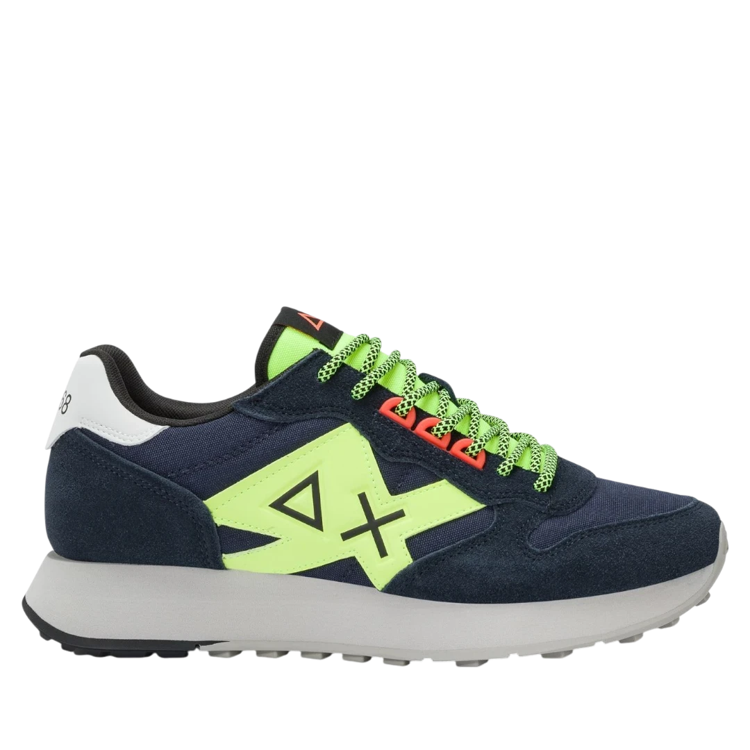 Ove SUN68 patike ističu se sportskim dizajnom i vibrantnim kontrastima koji unose svježinu u svaku kombinaciju. Tamno plava osnova od brušene kože i tekstila savršeno je upotpunjena fluorescentno žutim panelom i zelenim pertlama, dok detalji u narančastoj boji daju dinamičan, moderan završetak. Prepoznatljivi SUN68 simboli na bočnim stranama naglašavaju brendov identitet, dok lagani đon u svijetlosivoj nijansi pruža udobnost i stabilnost tokom cjelodnevnog nošenja.