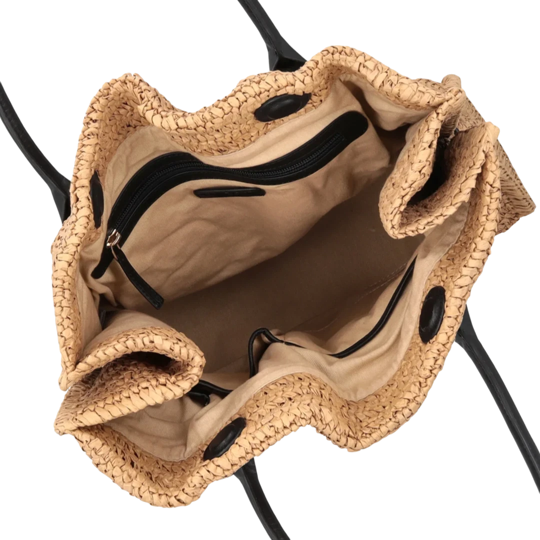 - Sastav Vanjština: 80% Rafija + 20% Koža / Postava: 100% Pamuk