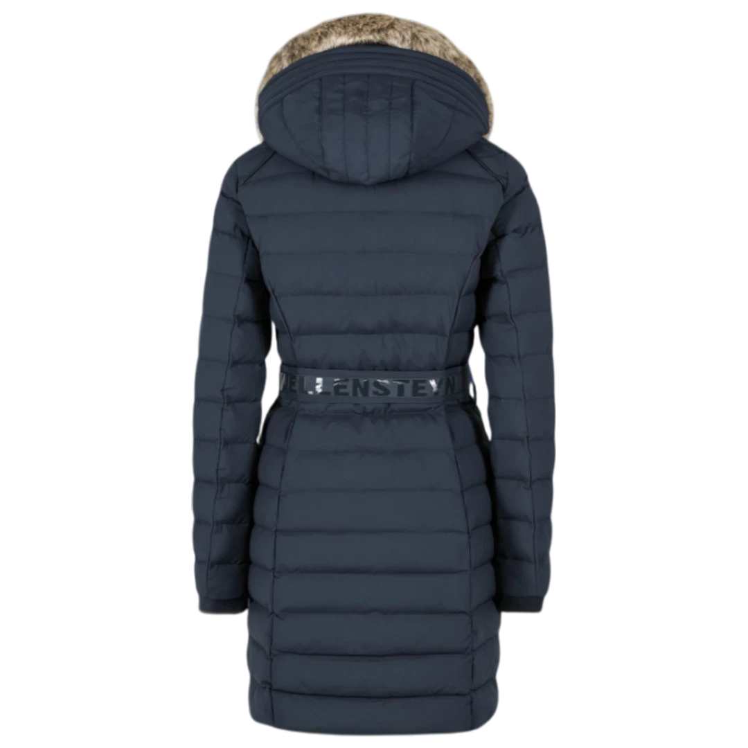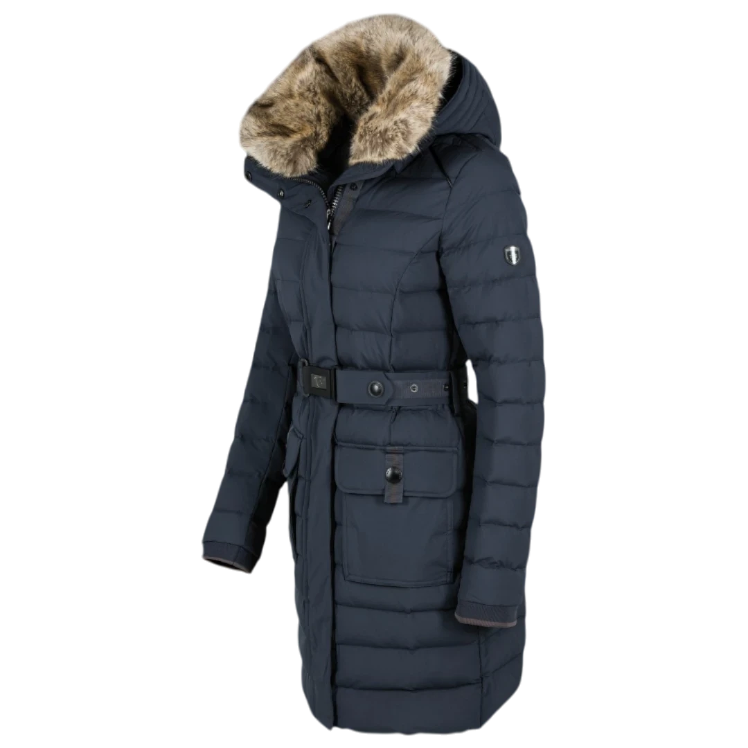 Wellensteyn ženska zimska jakna u tamnoplavoj boji odiše sofisticiranošću i funkcionalnošću. Dugi, ženstveni kroj sa strukiranim pojasom ističe siluetu i pruža elegantan izgled, dok bogata kragna s krznom unosi notu luksuza i topline. Izrađena od visokokvalitetnog, vodootpornog materijala, ova jakna nudi optimalnu zaštitu od hladnoće i vjetra, a lagano punjenje omogućava savršenu ravnotežu između udobnosti i topline. Praktični džepovi i čvrsti zatvarači doprinose svakodnevnoj funkcionalnosti. Idealna za žene koje traže spoj elegancije, kvaliteta i bezvremenskog Wellensteyn stila.